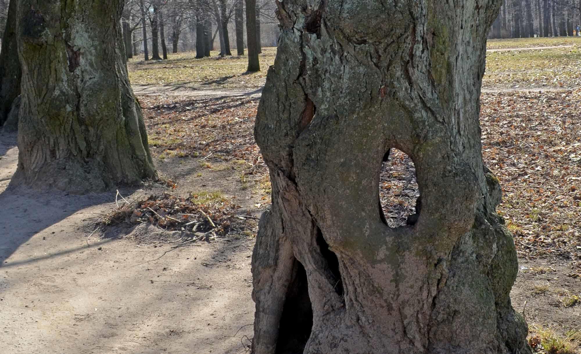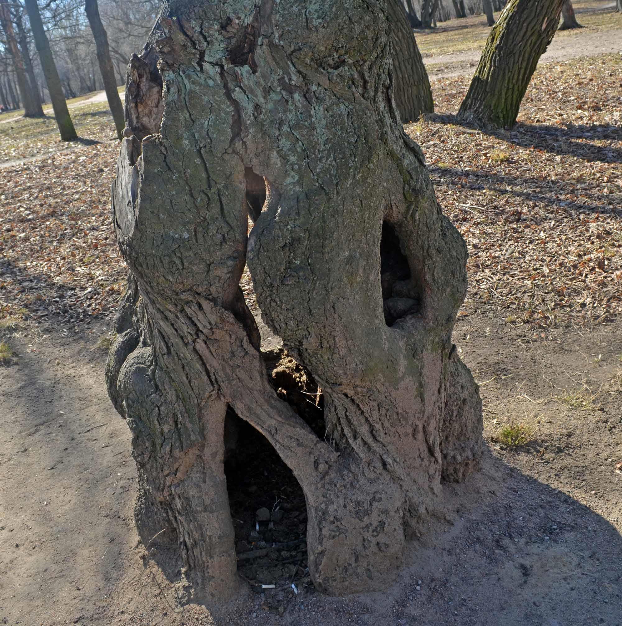 На выходе из Новознаменки обнаружили вот такие интересные полые деревья: