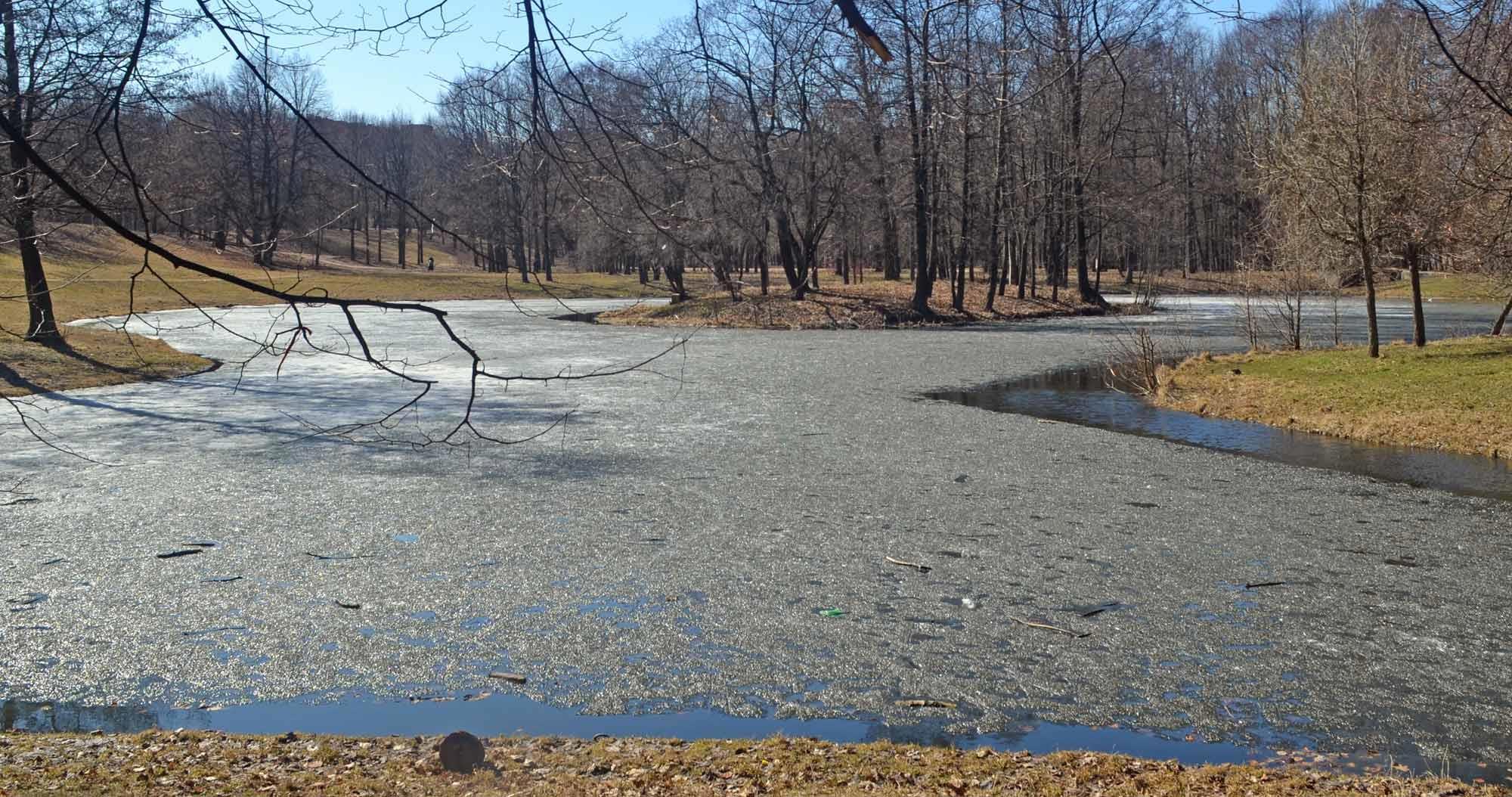 А пруды - с лужами. Тут ещё лёд не до конца сошёл: