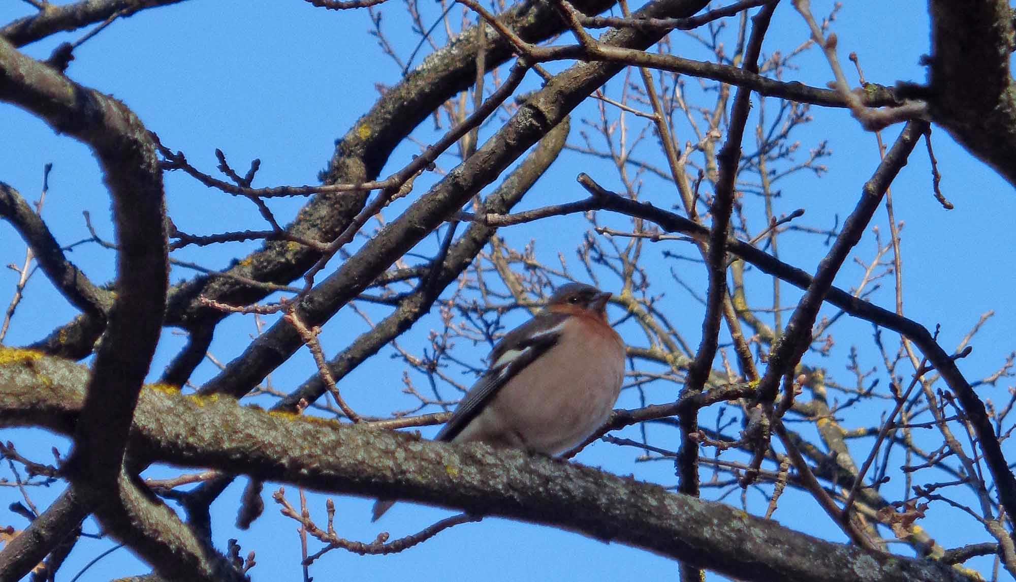 Зяблик распевал на весь парк, и ему было плевать, что люди его фотографируют: