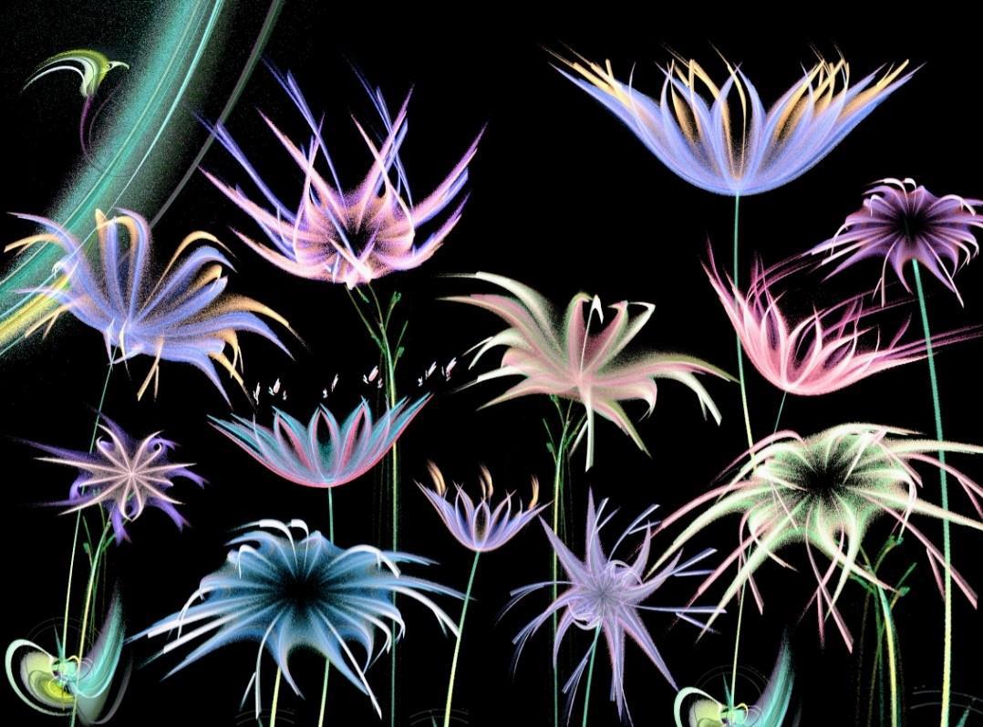 Немного цветов. Как мне нравится эта картина. Совершеннейший балланс цвета, формы, размера и позиции. Инопланетные цветы редчайшей красоты. Можно смотреть часами.