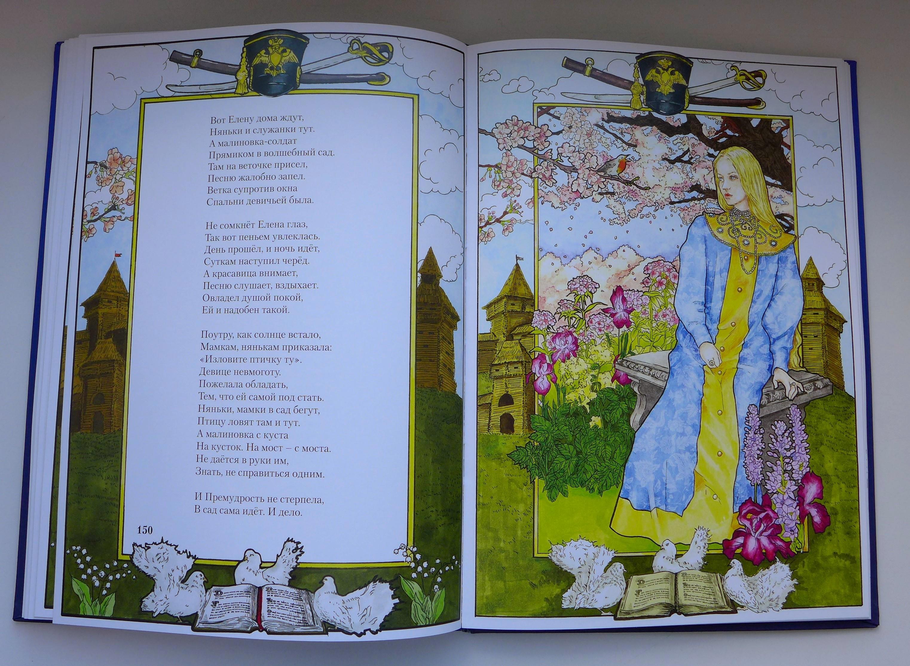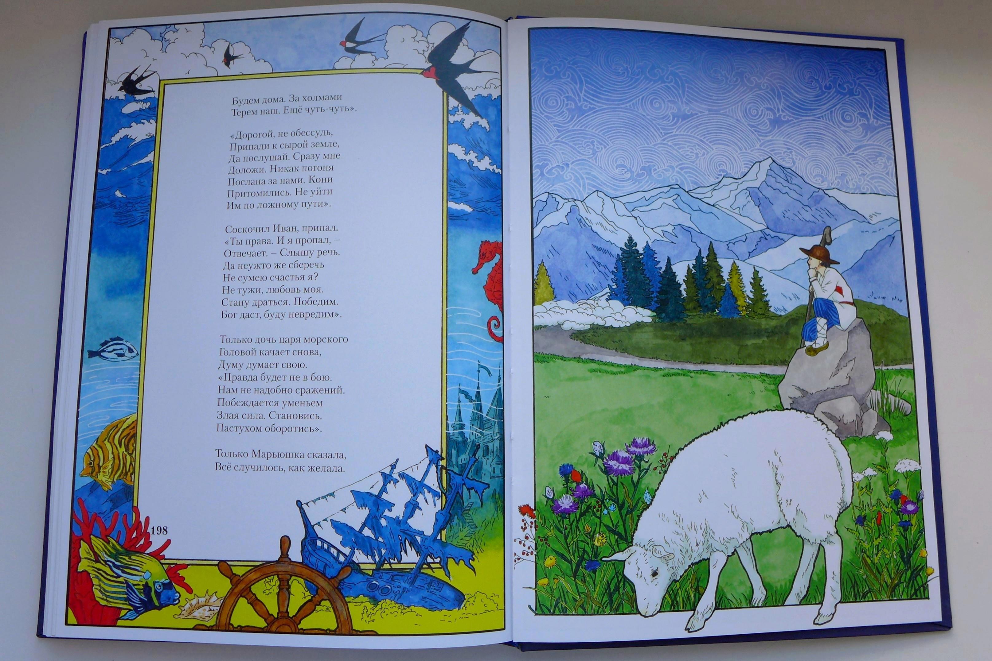 Намеренно прикладываю фото из уже изданной книги. На мой взгляд, она получилась красочной. И иллюстрации и рамки-украшения созданы талантом этой художницы. Из её отличительных черт – узнаваемый стиль. У каждого он свой, есть он и у Юлии; выход рисунка за очерченные границы, тонкость письма, интерес к фолку, какая-то неуловимая печаль. Достоинств много.