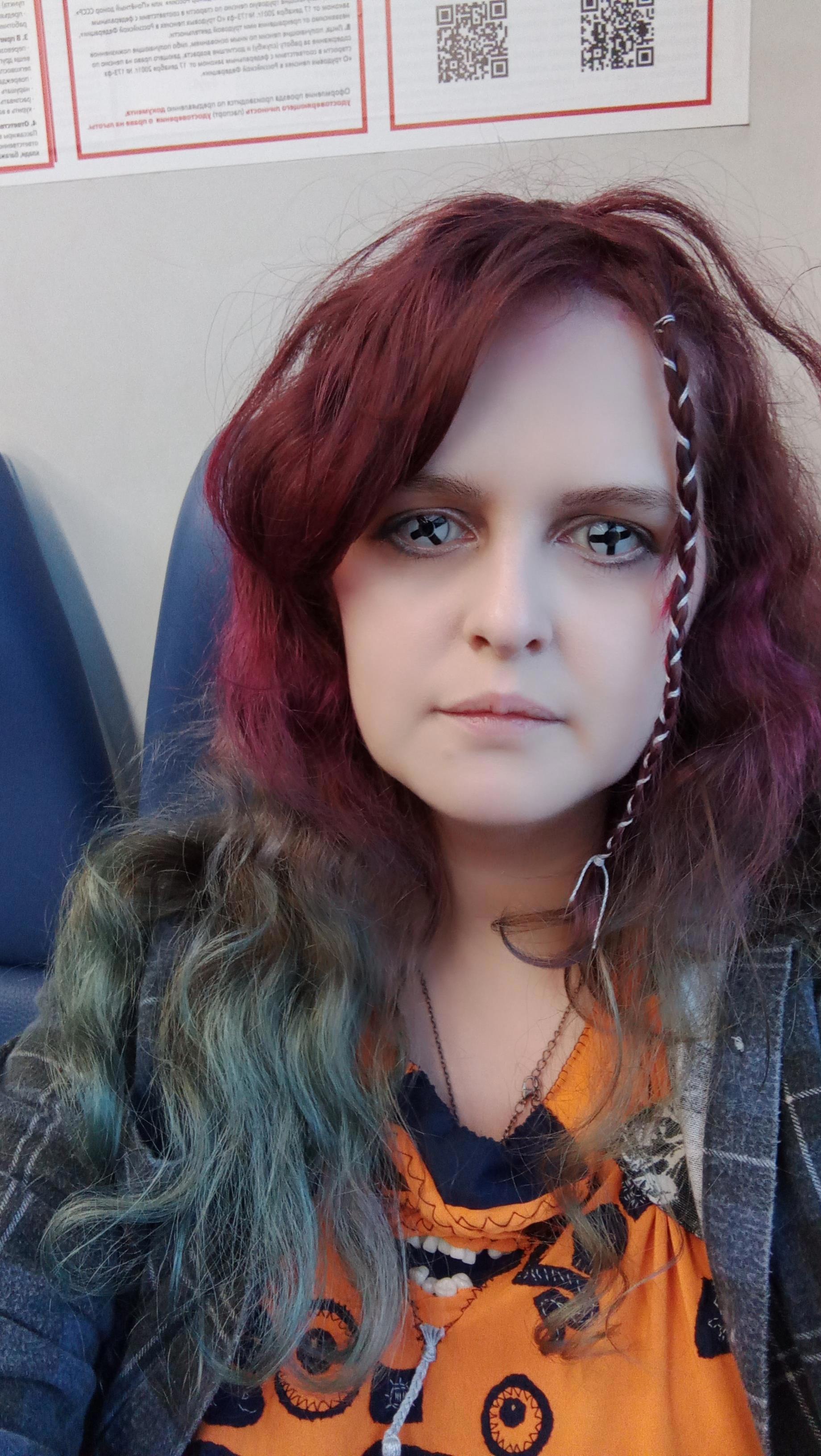 И своими жутенькими новыми глазками в электричке народ попугала. Правда, народ какой-то непуганный оказался. Надо было всё-таки в полном гриме выходить. Ну, как на аватарке)