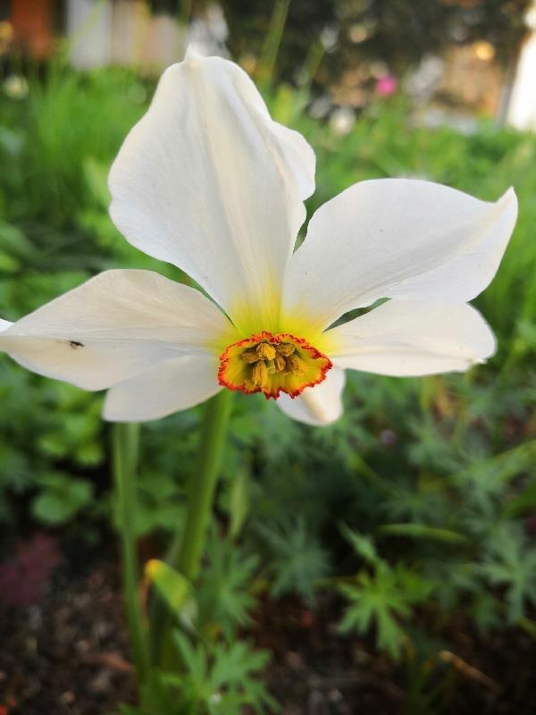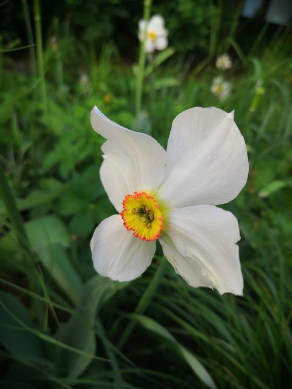 Когда мы жили в Крыму, отец дарил мне небольшой букет этих прекрасных цветов в день моего рождения — 24 апреля там цвели только они. И хотя у нарцисса много видов, я ежегодно получала в подарок именно поэтические (вот такое красивое название у цветов, которые я запечатлела на фото 1 июня 2021 года в Москве).