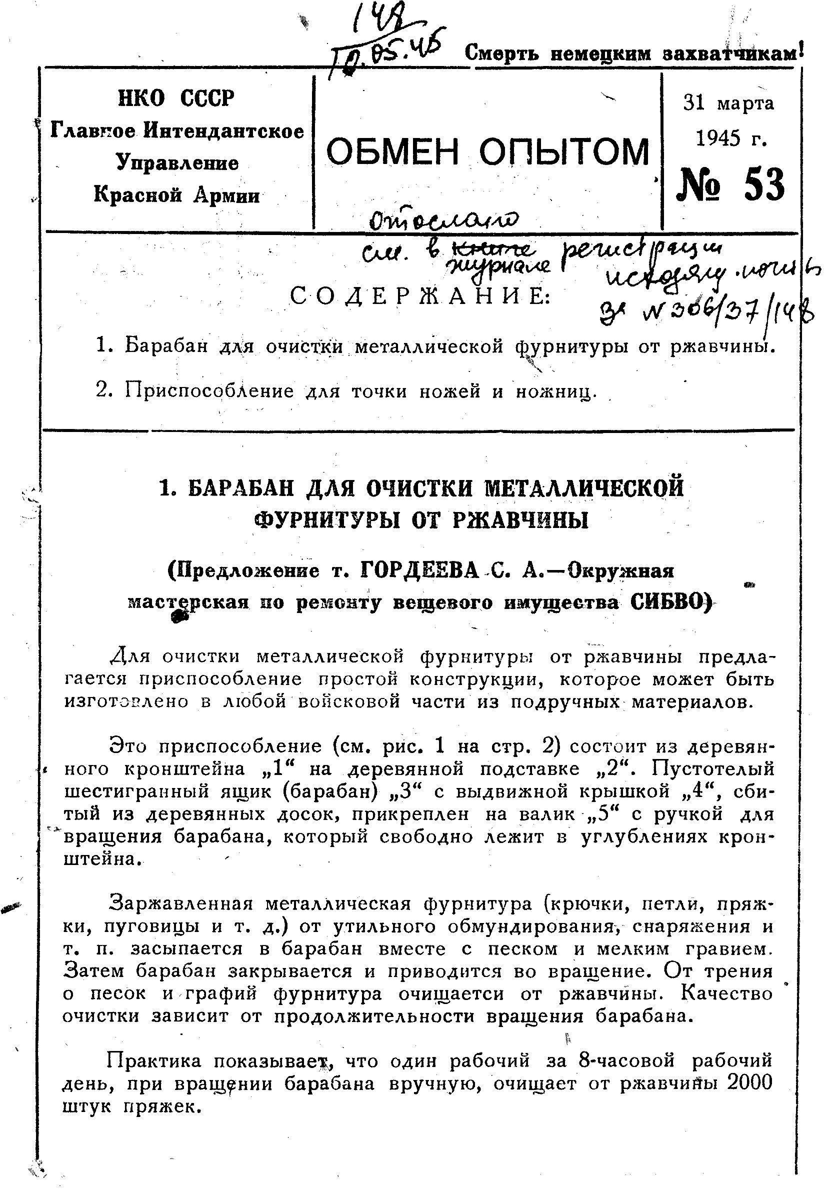 д/с: Брошюра от 31 марта 1945 г. «Обмен опытом»