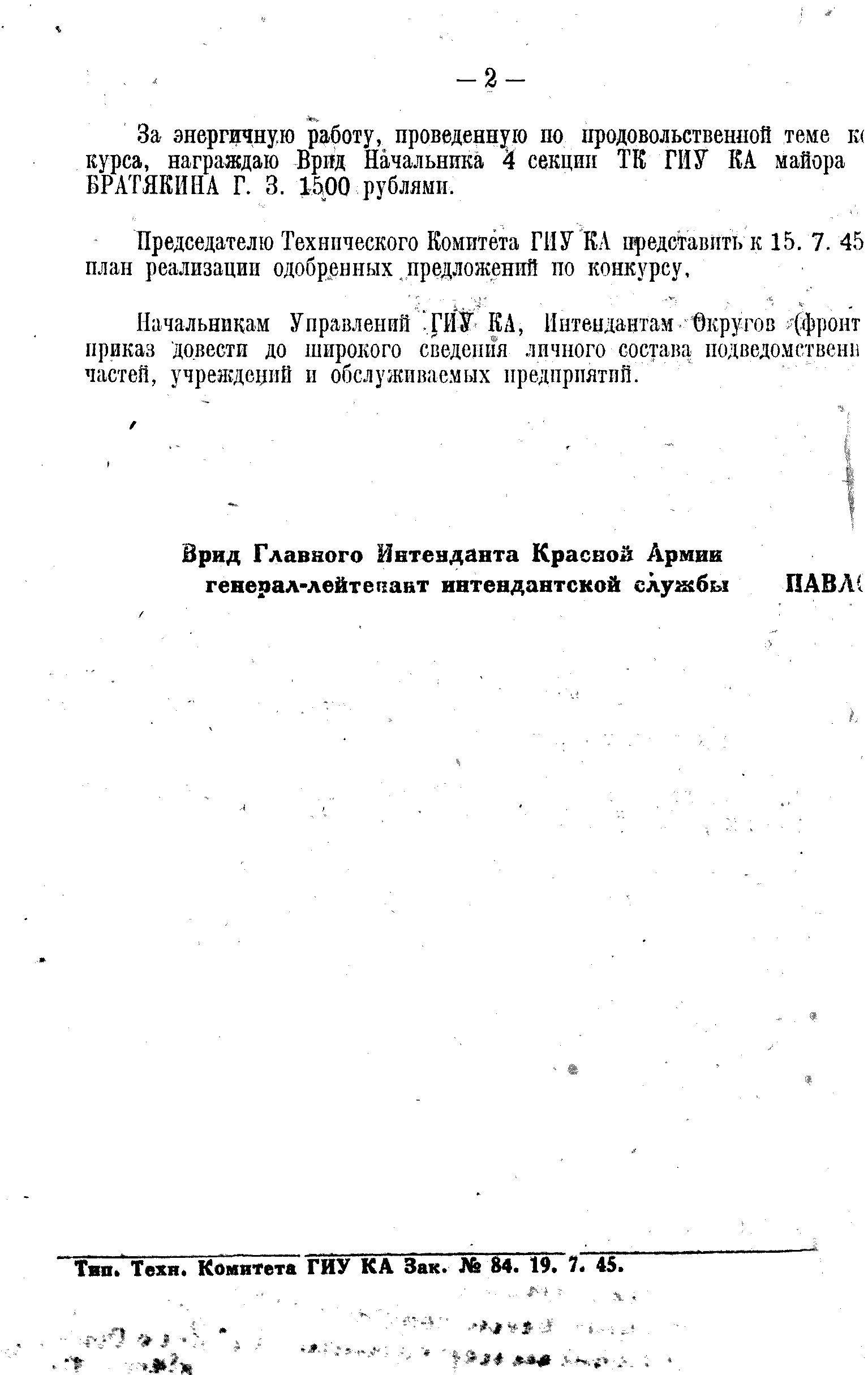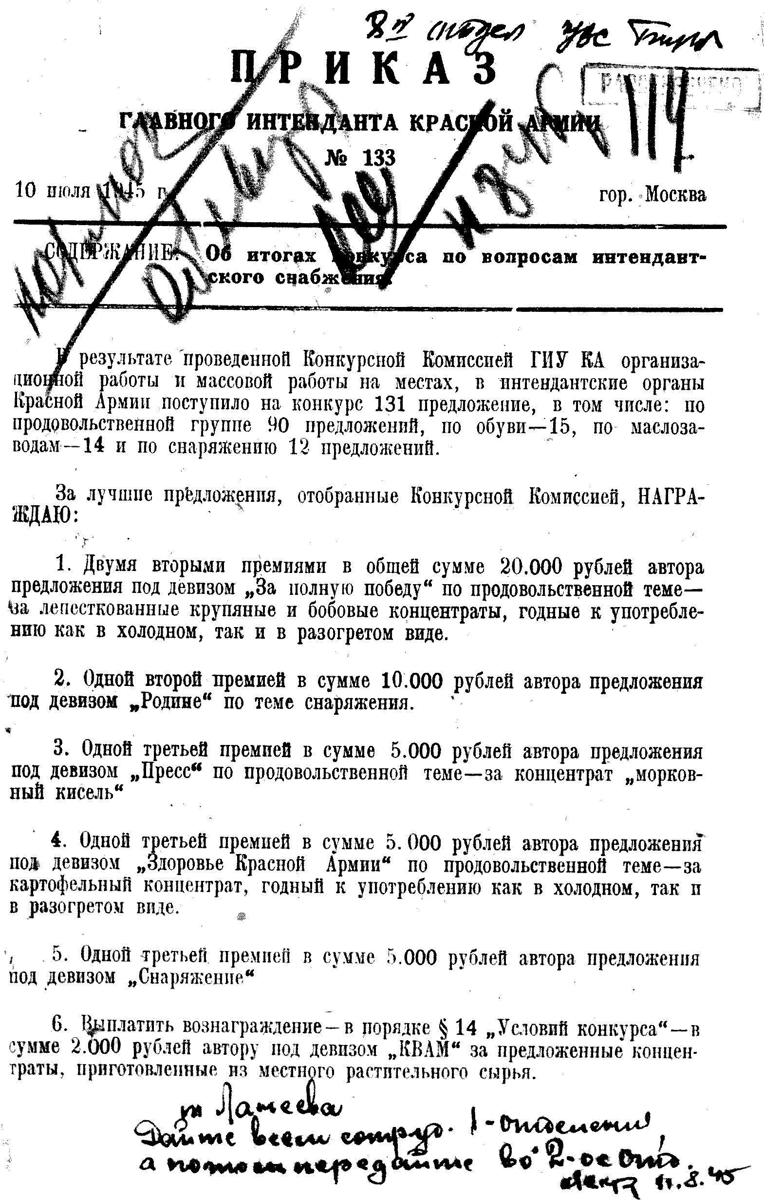 от 10.07.1945 г. № 133 «Об итогах конкурса по вопросам интендантского снабжения»![]()