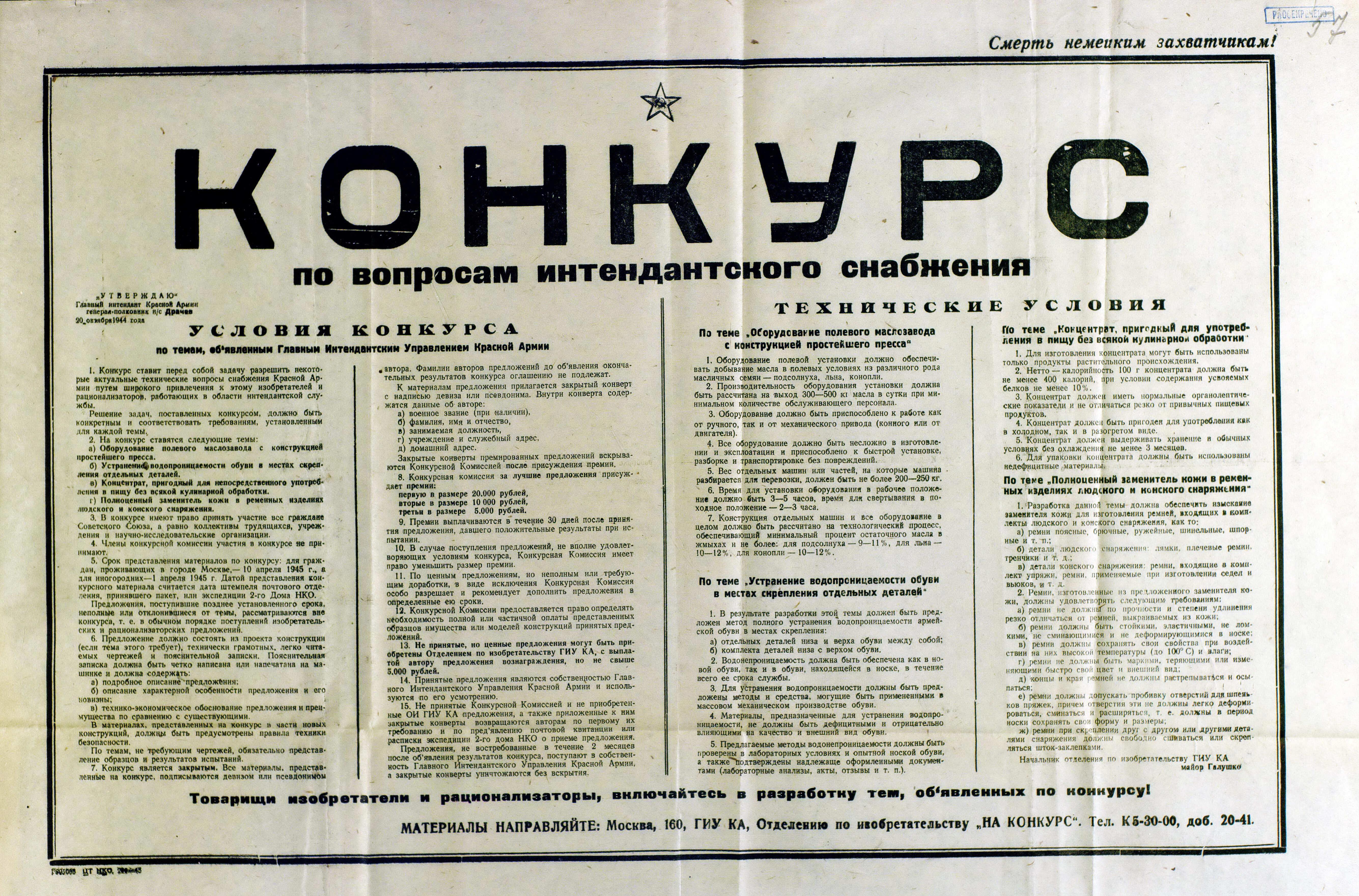 Естественно, подобные конкурсы проводили не только интенданты. Скорее всего этого было правилом для всех центральных органов Красной Армии, да и не только РККА. Ведь как известно, наш народ талантлив и смекалист. Желательно только его ещё и заинтересовать.