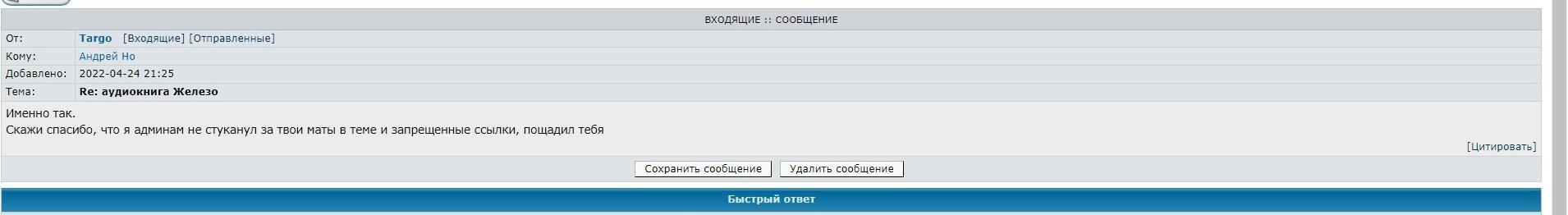Скажи спасибо, что я админам не стуканул за твои маты в теме и запрещенные ссылки, пощадил тебя