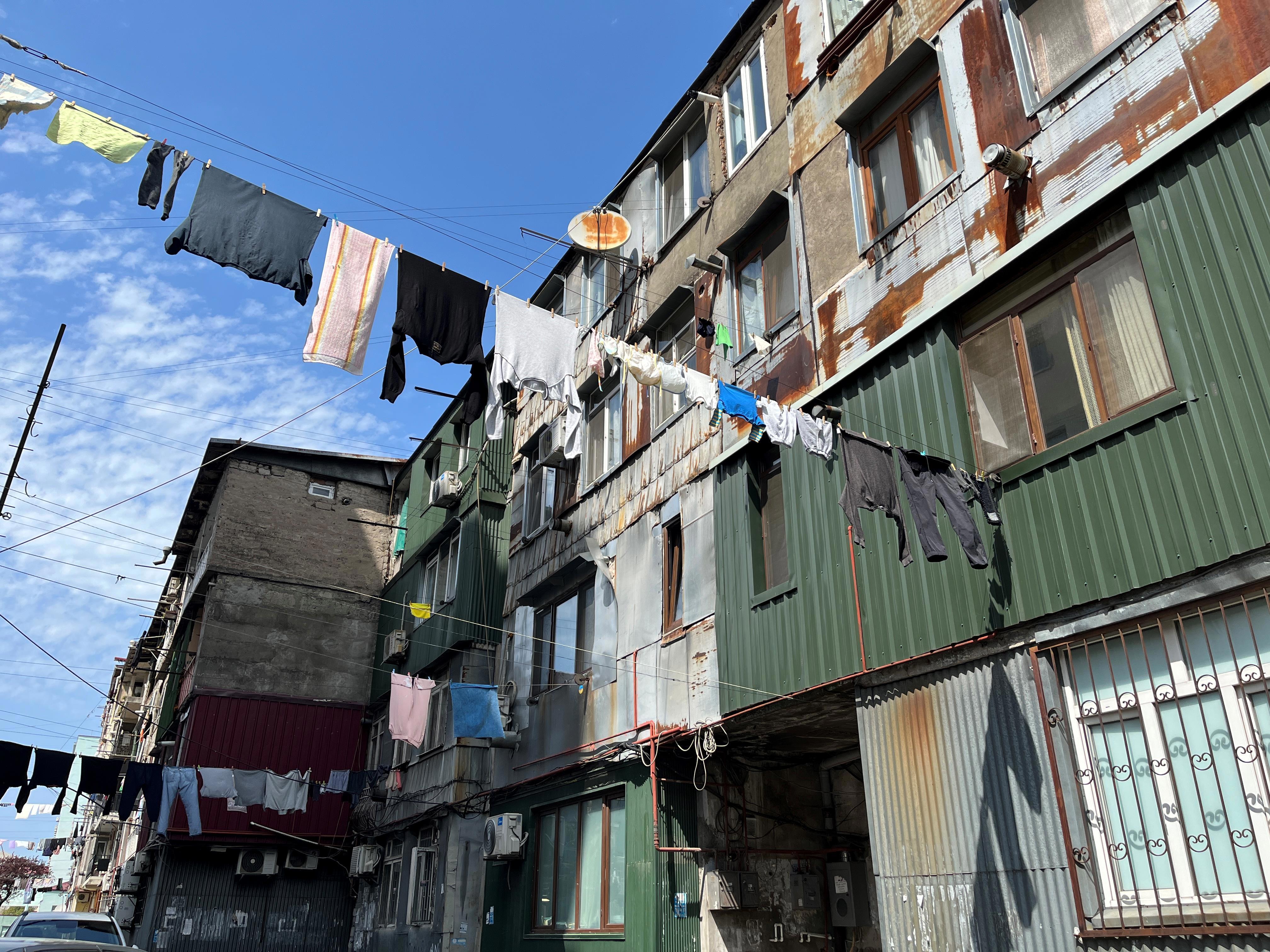 Есть некоторые дома, которые не достроены, но в них живут люди. То есть часть дома - голые бетонные стены, а другая часть - заселенные квартиры, выглядит на редкость странно.
