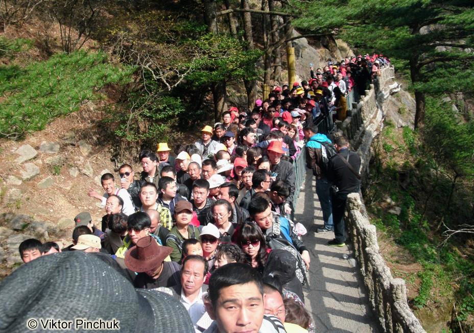"Полноводная река" китайских туристов, желающих посмотреть на "аватаровские" горы.
