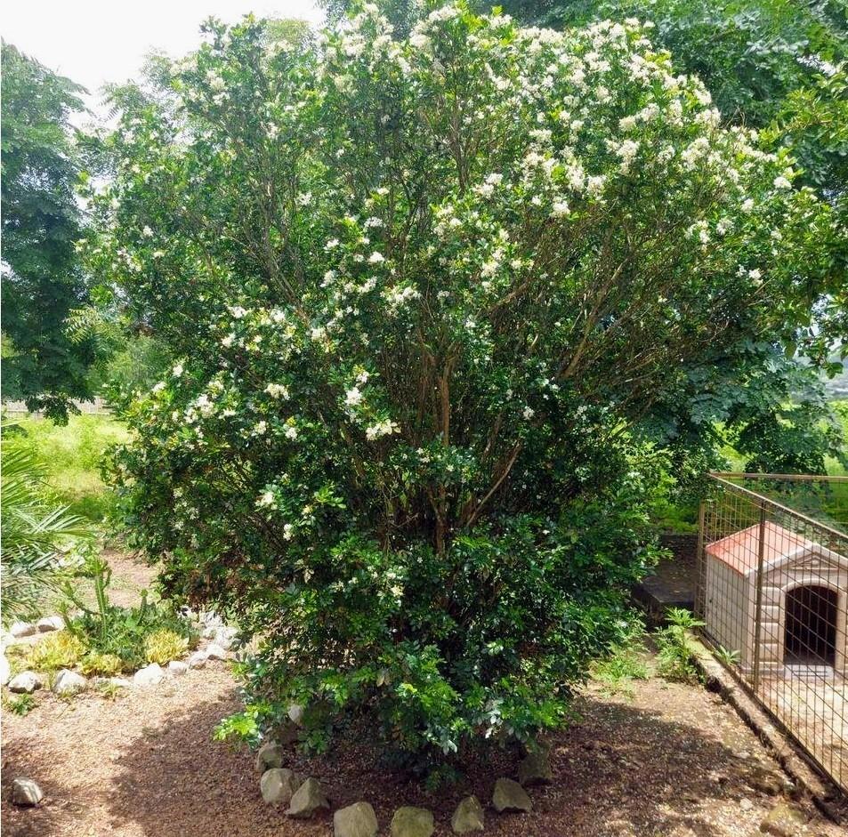 Куст жасминовый. Справа будочка для песика. Вот за кого я спокоен. Зимой он точно не замерзнет. (Правда потонуть может. Но вот в Эквадоре не так уж и много осадков зимой, как ожидалось. Или это я уже приврал? :)