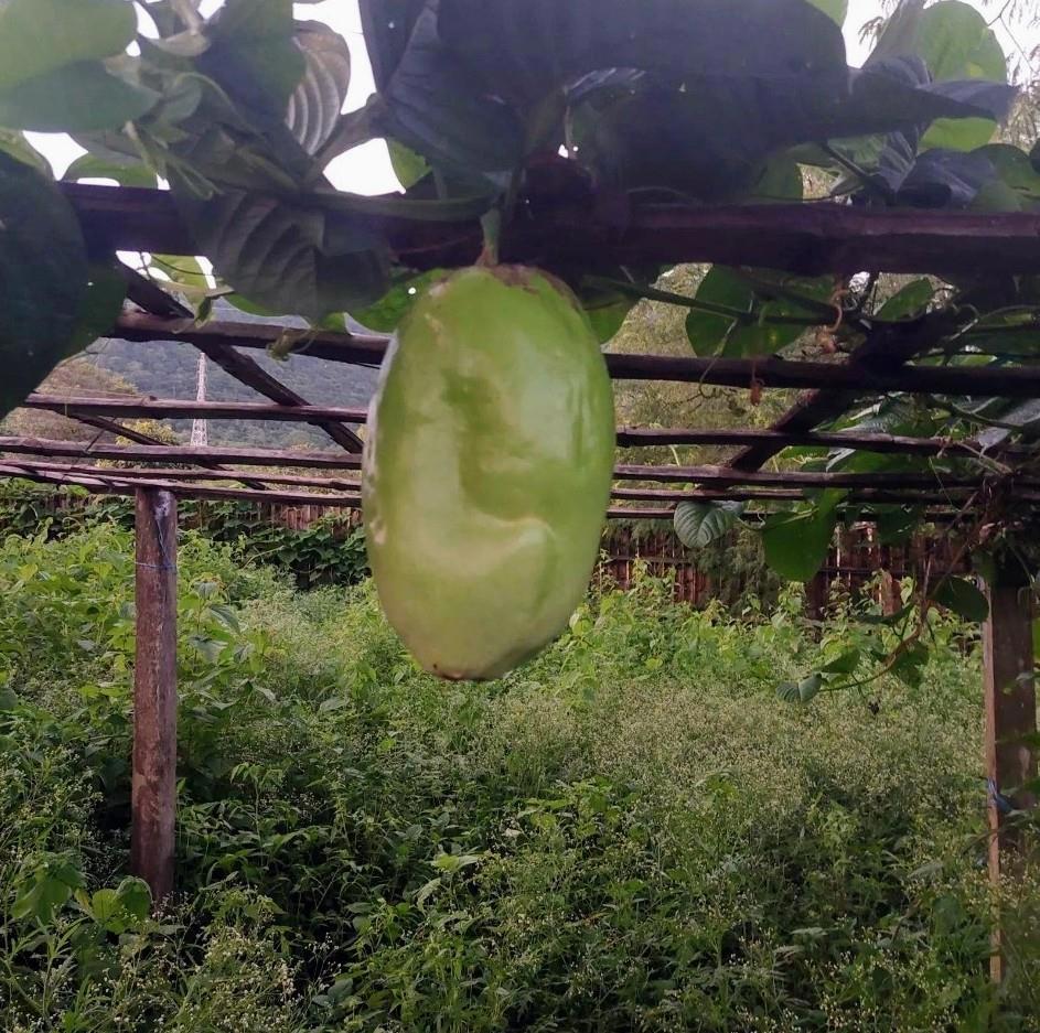 гигантская гринадийя, она же гигантская маракуйя. Не знаю вкусная она или нет внутри как папая, только белая,но то что он сверх-полезная это точно.