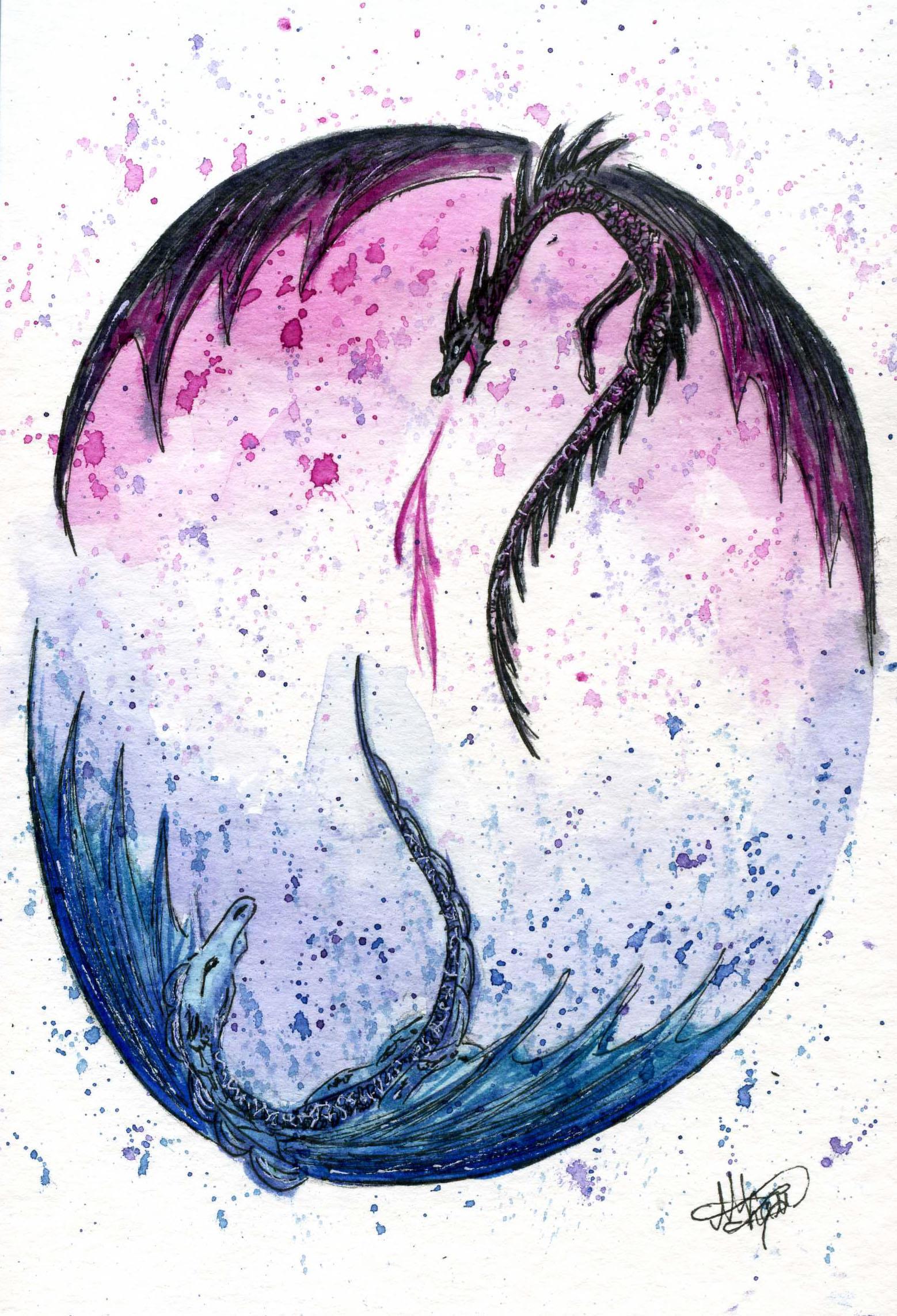 Автор: Мария КамардинаСегодня среда, и я выкладываю последние рисунки по роману «Леди и вор» в рамках своего марафона. В опросе победили Королевы Драконов – старшая, лазурная Кэтрин, и младшая, чёрно-розовая Ясмин. Я нарисовала их в форм виверн, с четырьмя конечностями – но мы с соавтором пришли к выводу, что Королевы могут менять драконий облик по своему желанию