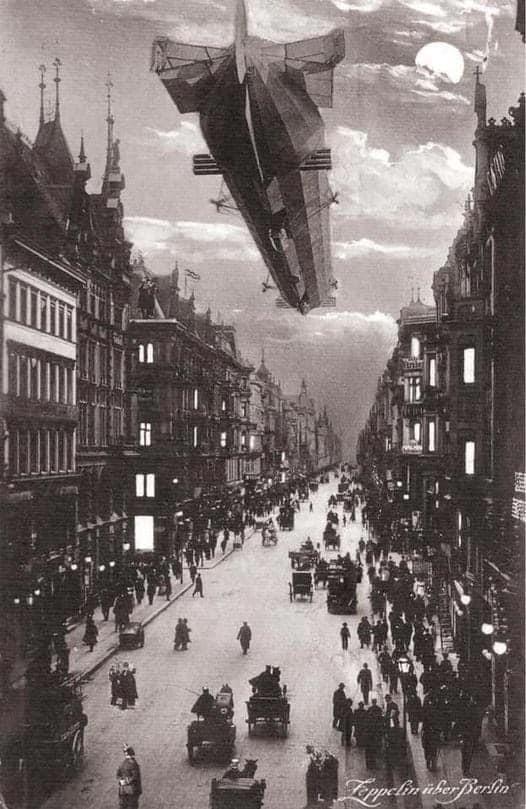 Почтовая открытка. "Цепеллин" над Берлином, ок. 1905 года