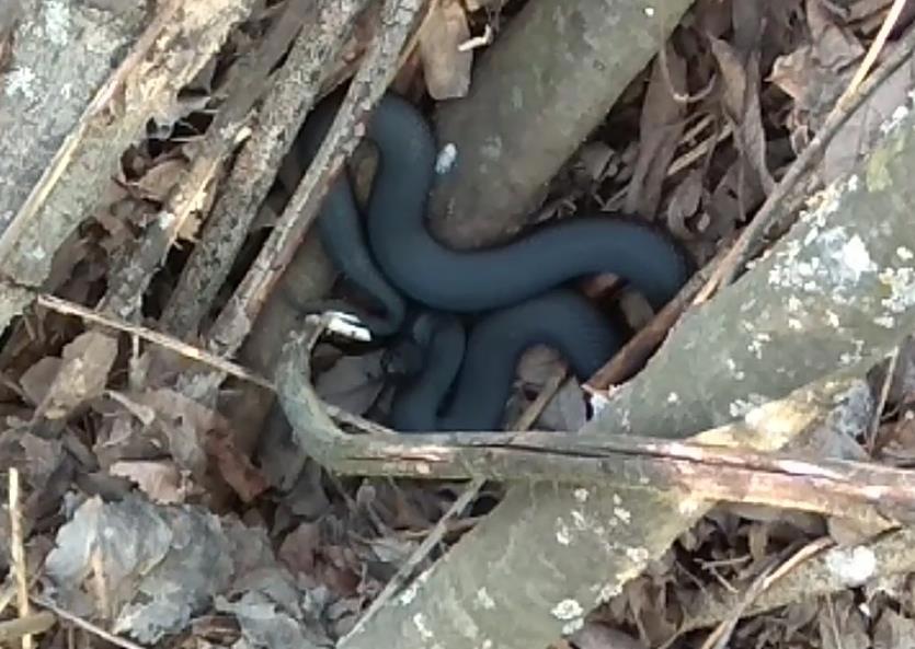 У ручья встретила черную гадюку. Она грелась на солнышке, свернувшись кольцами. Конечно, я не смогла пройти мимо и пристала к ней)) Обожаю змеюшек. А она нереальная красавица!