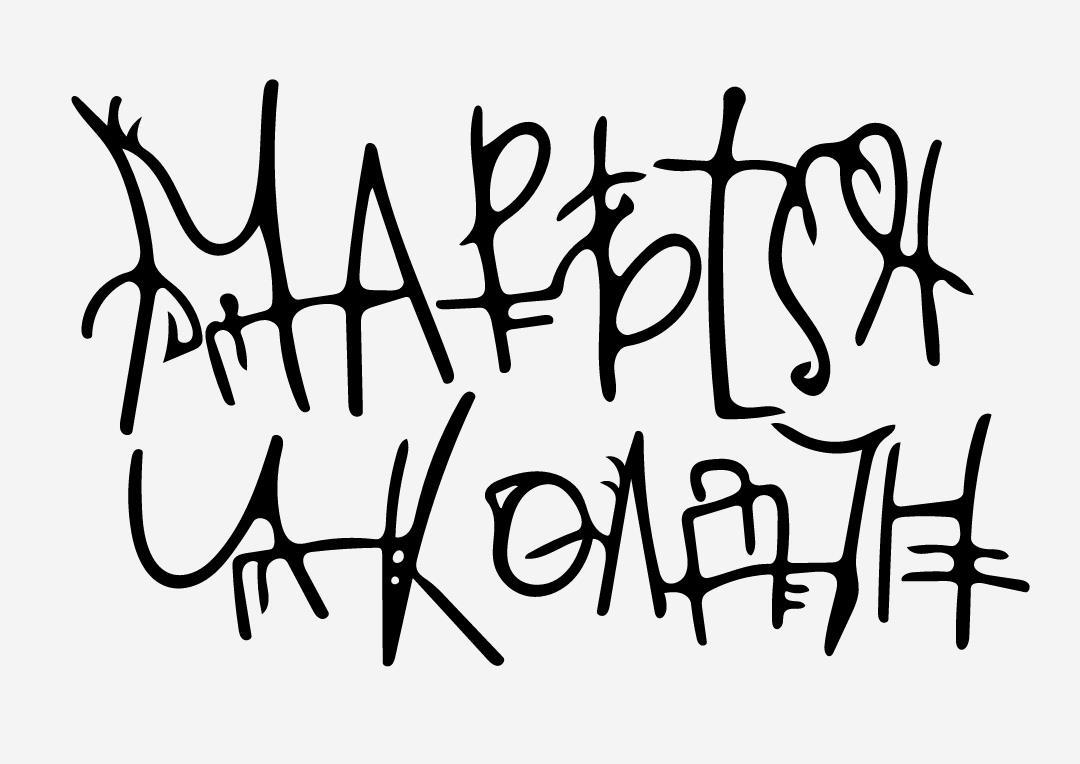 Внутри того, намеченного вами простого элемента, простой формы - сделайте тоже разметку, где какая буква стоять будет. А проще - впишите сперва надпись каким то компьютерным шрифтом. По этому образцу - рисуйте.