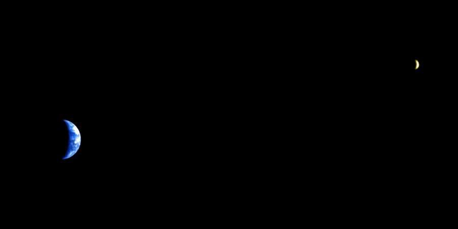 Луна на фоне Земли. Людям надо много приложить усилий, чтобы Земля не стала выглядеть как Луна или Марс. Для этого надо просто быть людьми, что как оказалось не совсем просто. LOL.