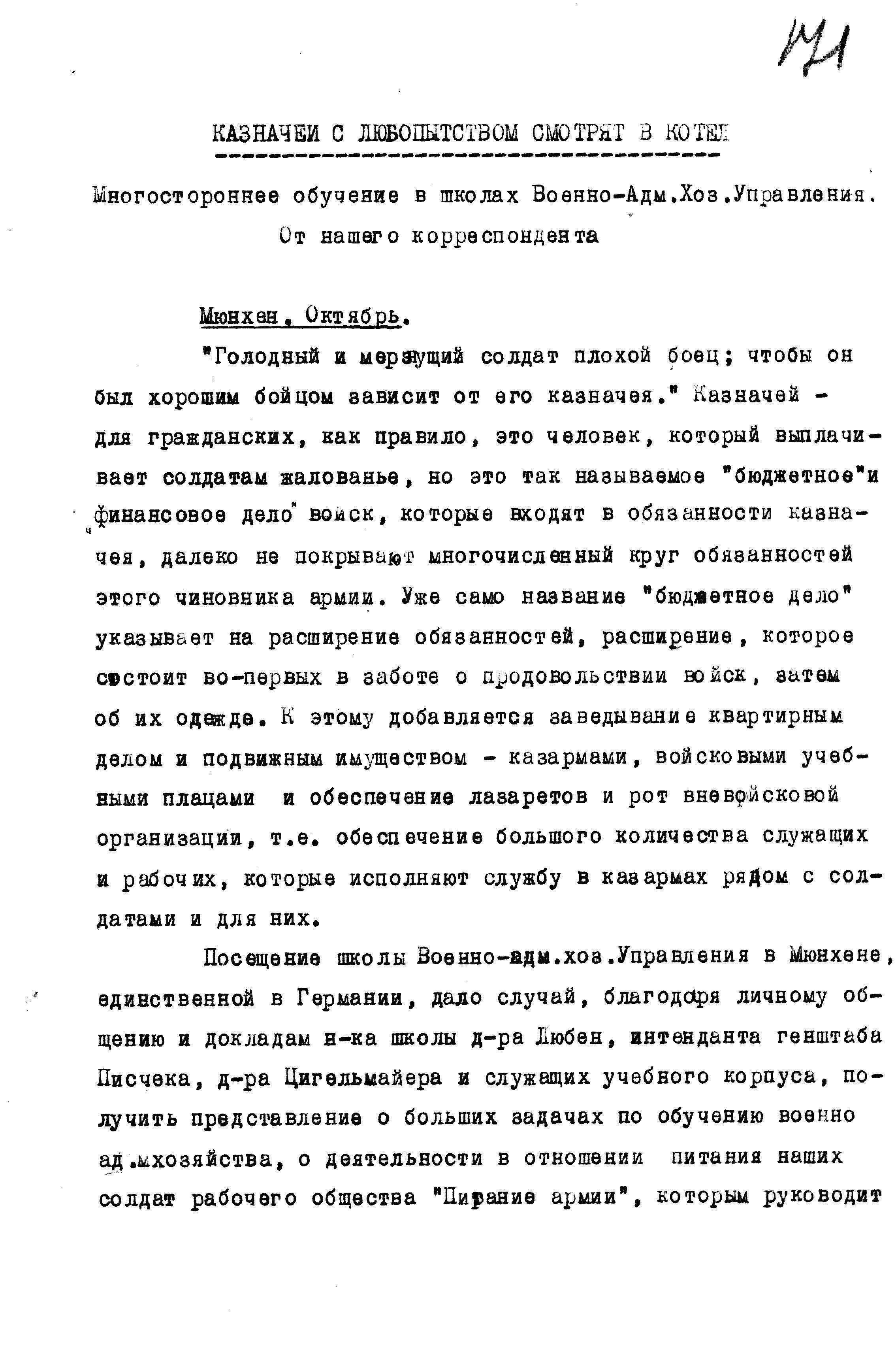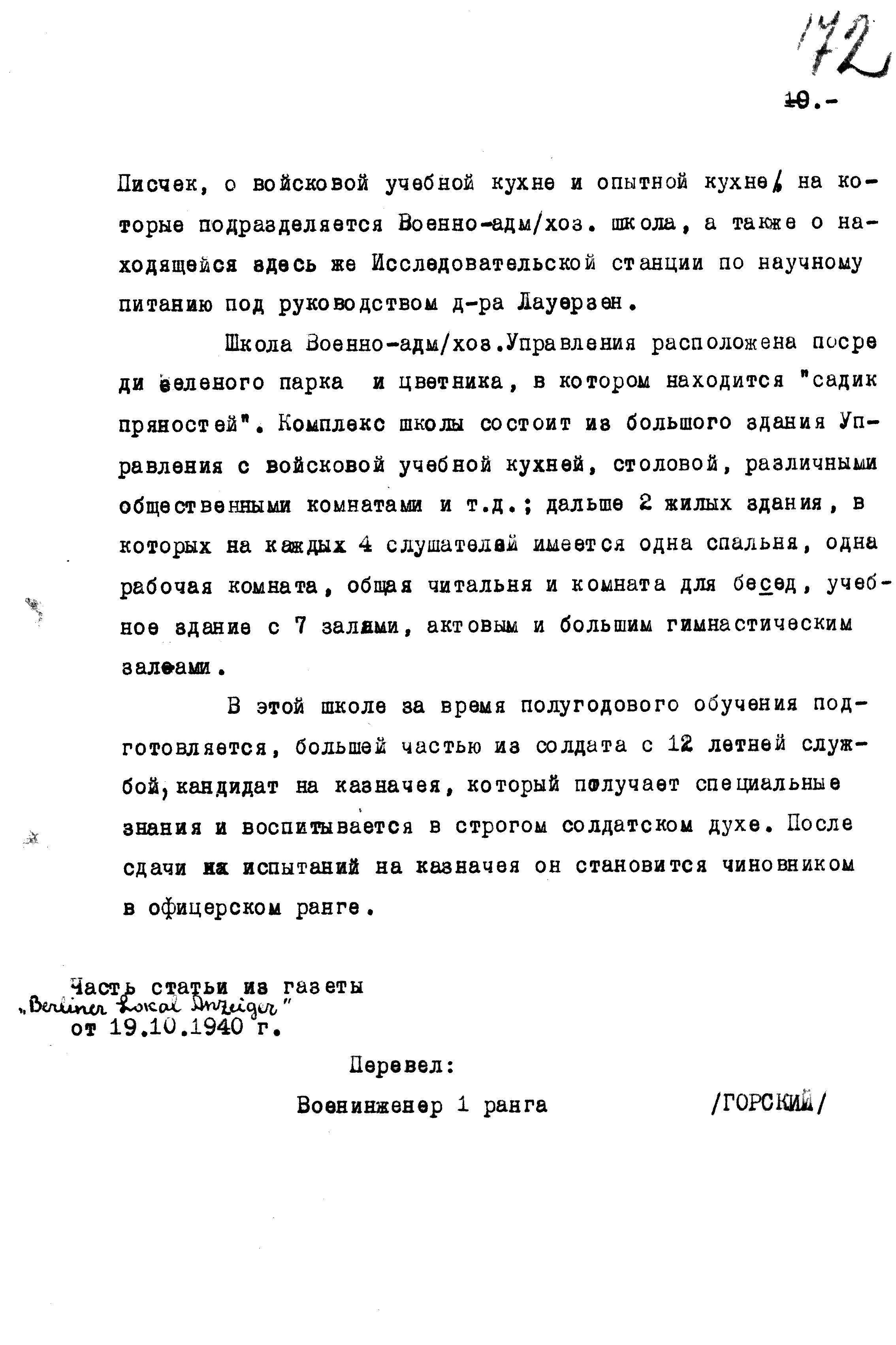 д/с: «Казначеи с интересом смотрят в солдатский котёл», статья из газеты «Berliner Lokal-Anzeiger» от 19 октября 1940 г.