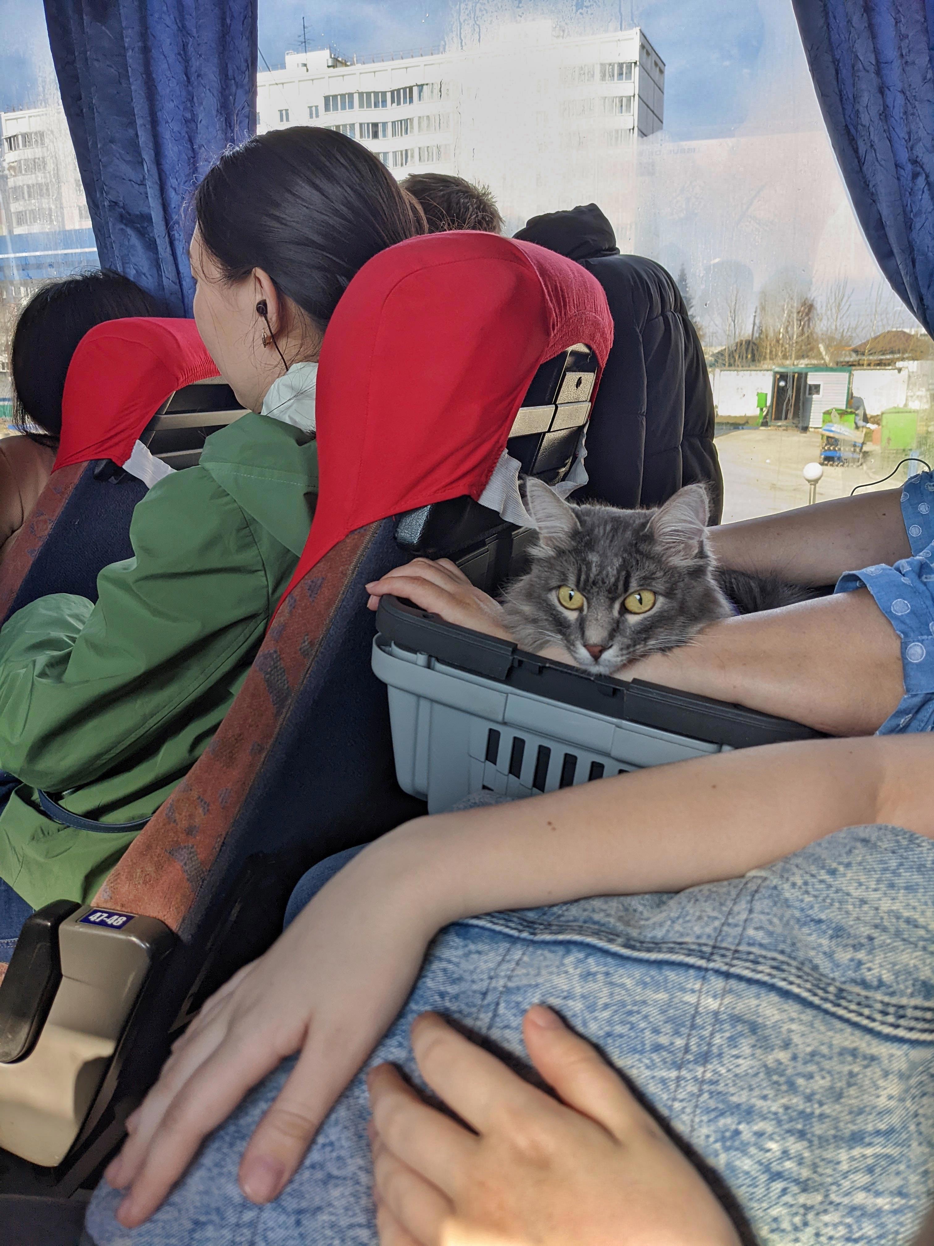 Автор: Екатерина НачаловаПоделюсь фотографиями этого теплого дня. В Западной Сибири временно лето, комары, шорты, шашлыки. По этому случаю навещаем родных. И сразу в автобусе получаем очаровательного соседа (ставлю фото с телефона, не знаю, красиво ли)