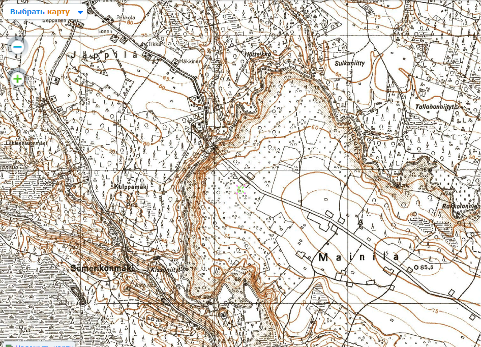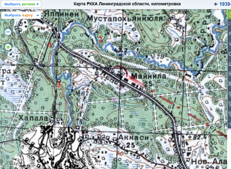 Финская предвоенная карта показывает, что Майнила действительно расположена на небольшом расстоянии от границы.