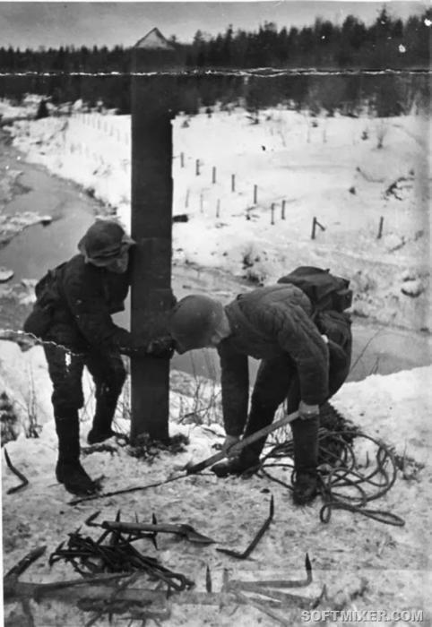 1. Вот советские саперы восстанавливают мост через реку Сестру (вид с финской территории со стороны деревни Яппинен)