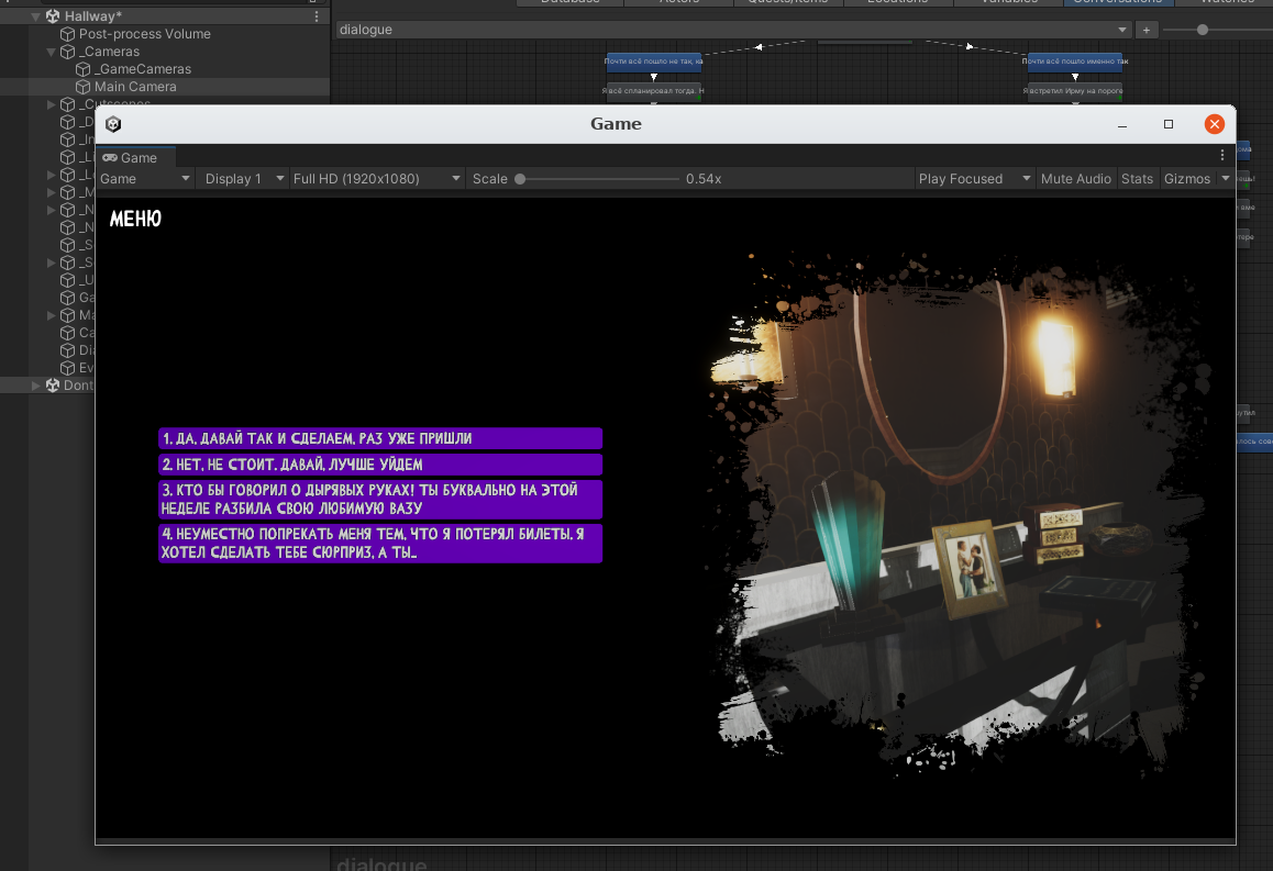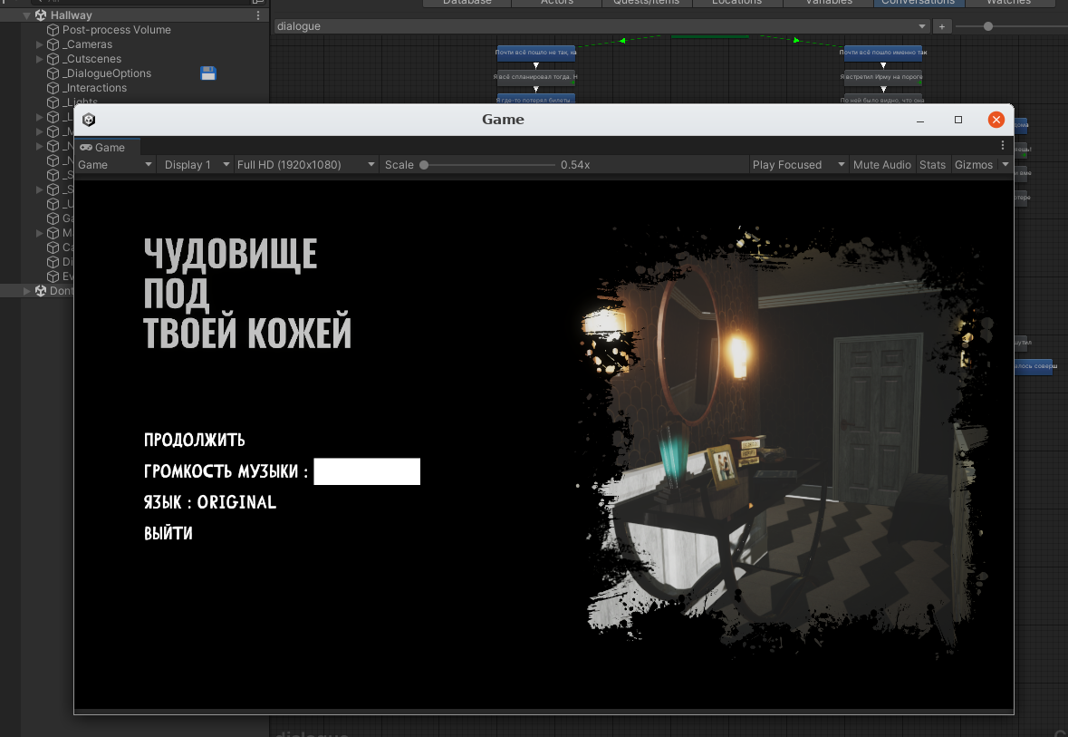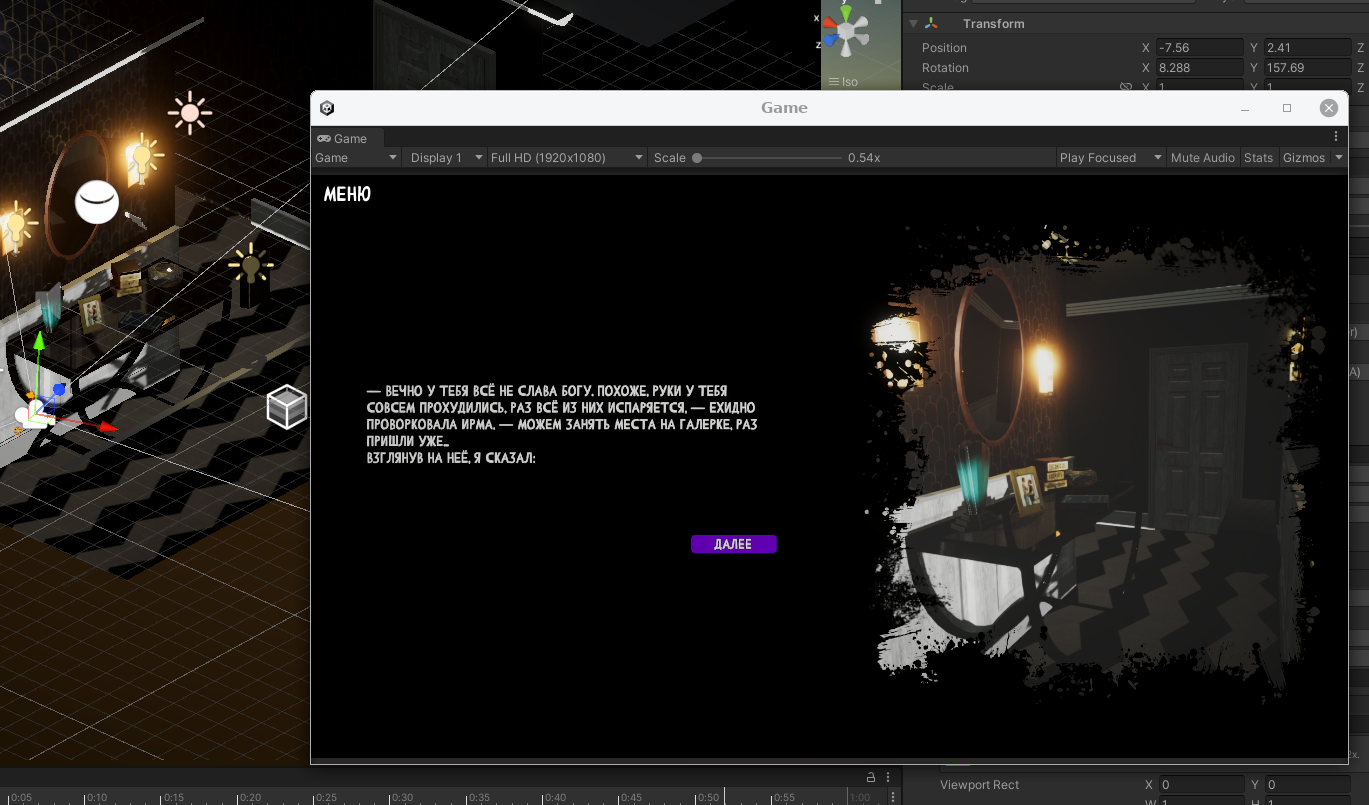 Недавно смог прикрутить самописный конвертер из текстового формата квеста в формат пригодный для игрового движка, сделал поддержку разных размеров экранов (и даже широкоформатников)! Донастроил меню и масштабирование текста/элементов.