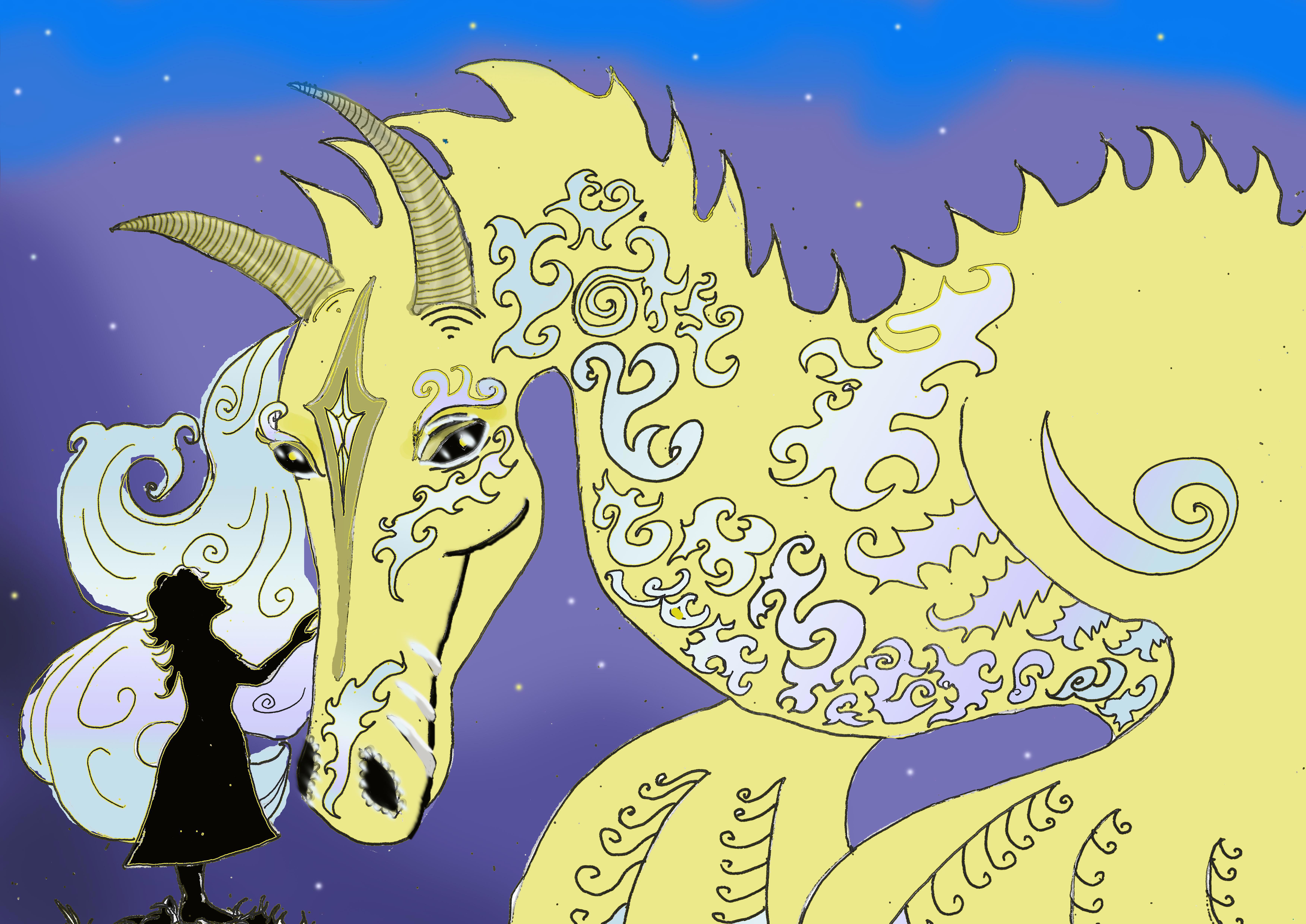 Но вышло, скорее, по мотивам. И да, семилетнего золотого дракона я не могла представить иначе при всем желании, надеюсь, автор на меня не обидится.