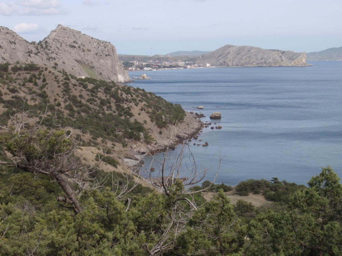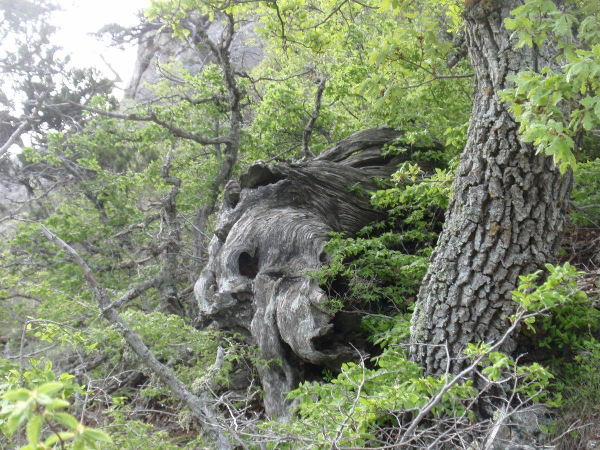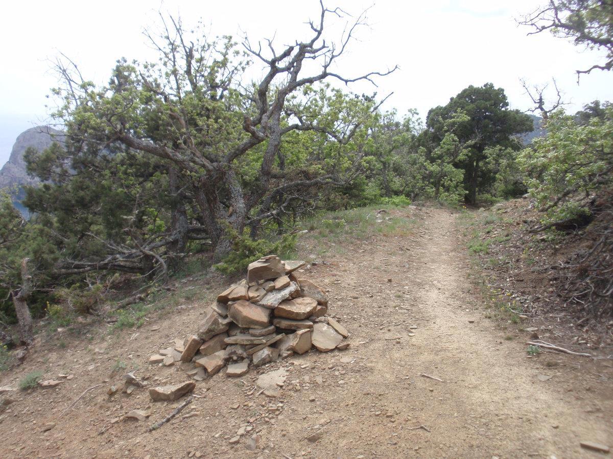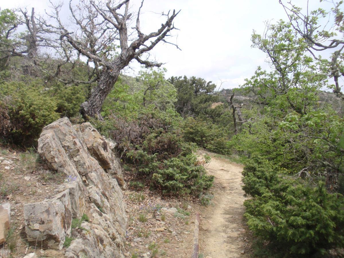Тропа на Новый Свет тоже невероятно живописна. Воздух пахнет можжевельником – его не вдыхаешь, а просто пьёшь, как воду. Можжевельник древовидный, встречаются огромнейшие многовековые экземпляры. Много причудливо и сказочно выгнутых деревьев, прорастающих сквозь камни. Между корней бегают личинки драконов. Видели змею, но сфотать не успели ))