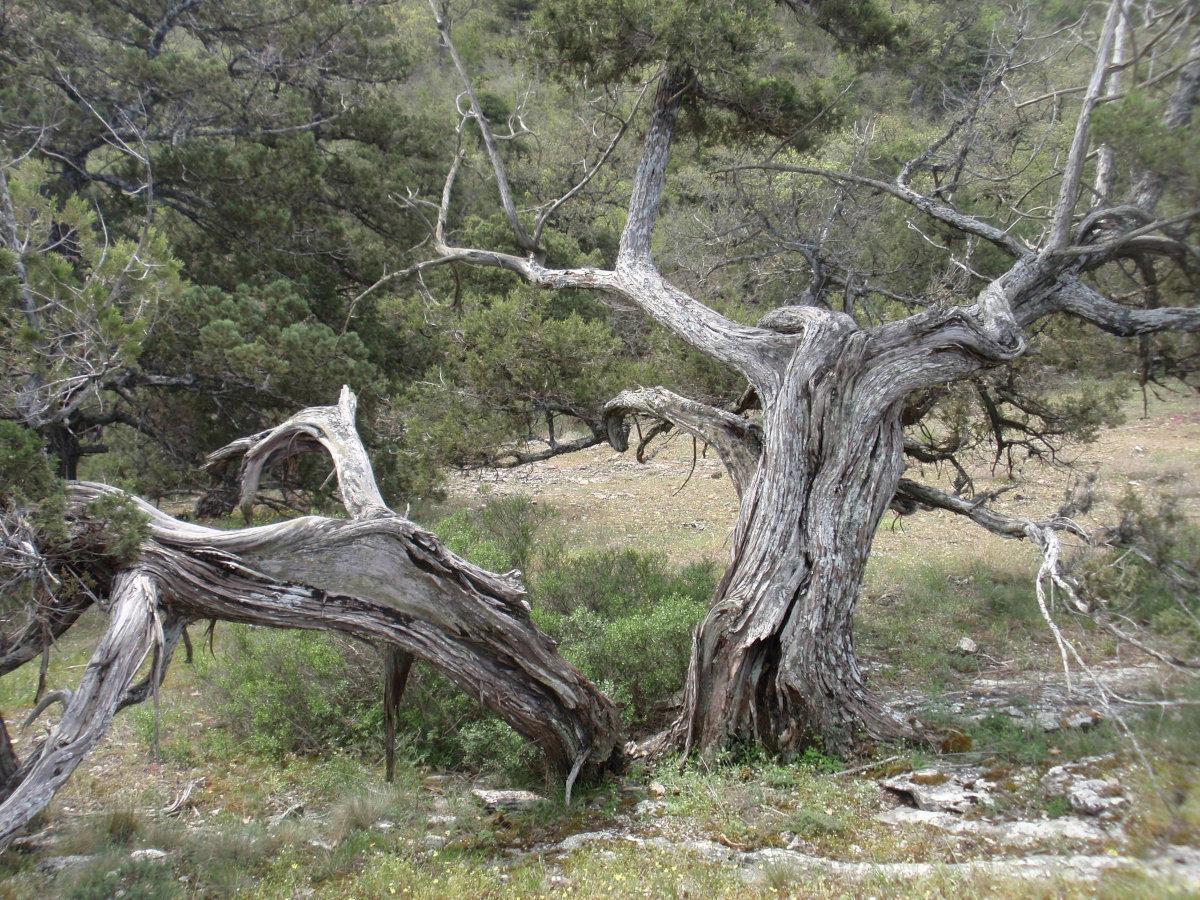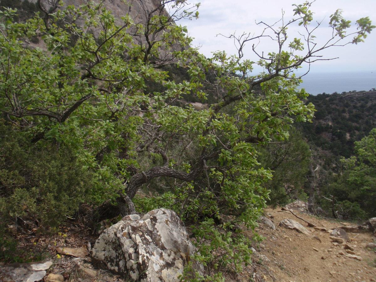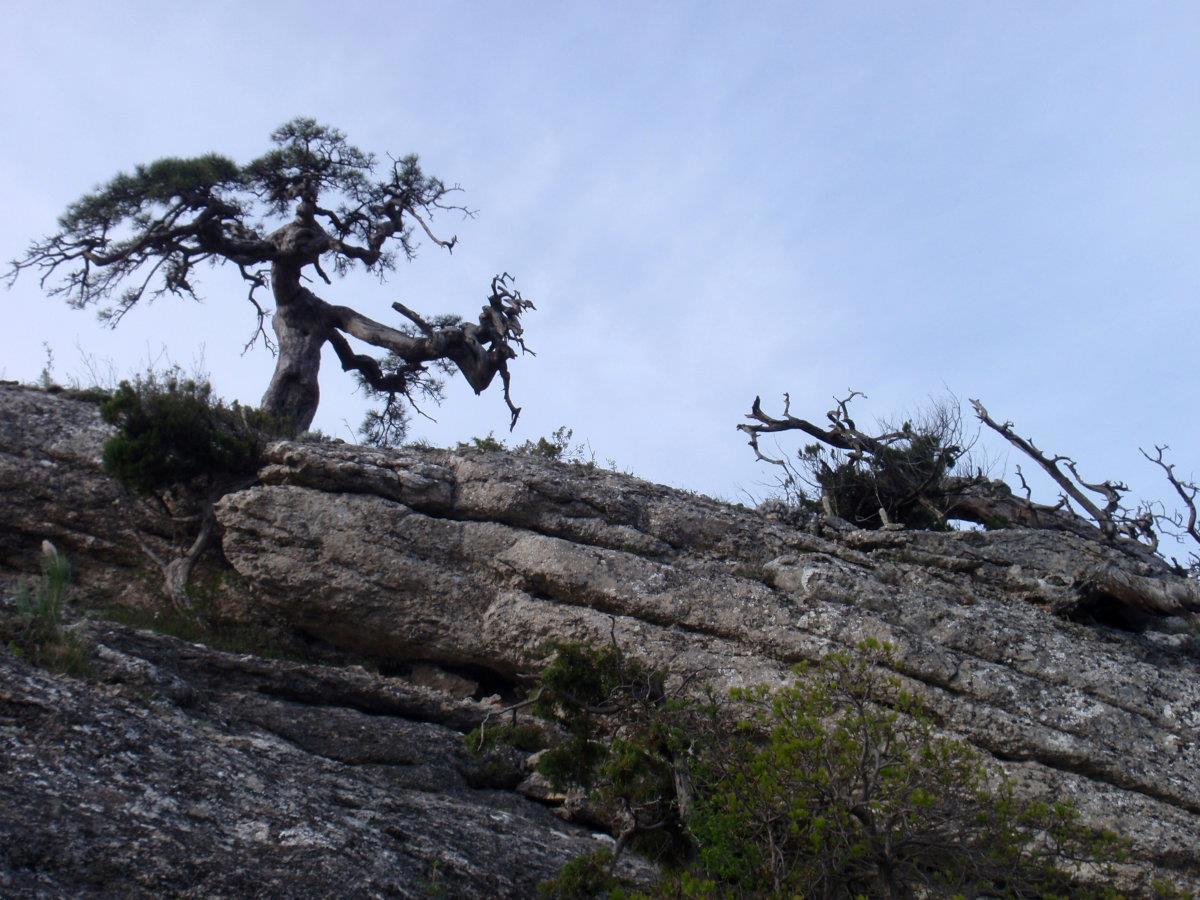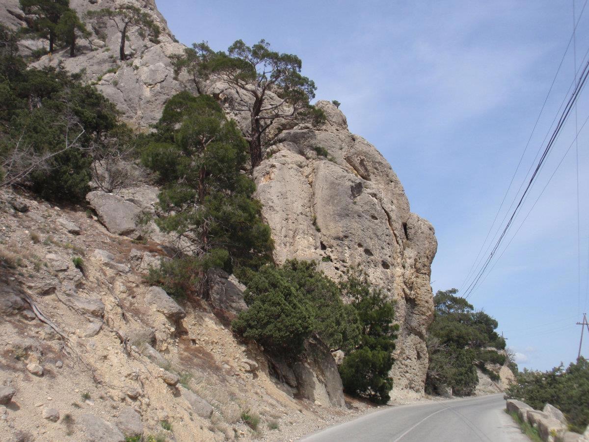 Тропа на Новый Свет тоже невероятно живописна. Воздух пахнет можжевельником – его не вдыхаешь, а просто пьёшь, как воду. Можжевельник древовидный, встречаются огромнейшие многовековые экземпляры. Много причудливо и сказочно выгнутых деревьев, прорастающих сквозь камни. Между корней бегают личинки драконов. Видели змею, но сфотать не успели ))