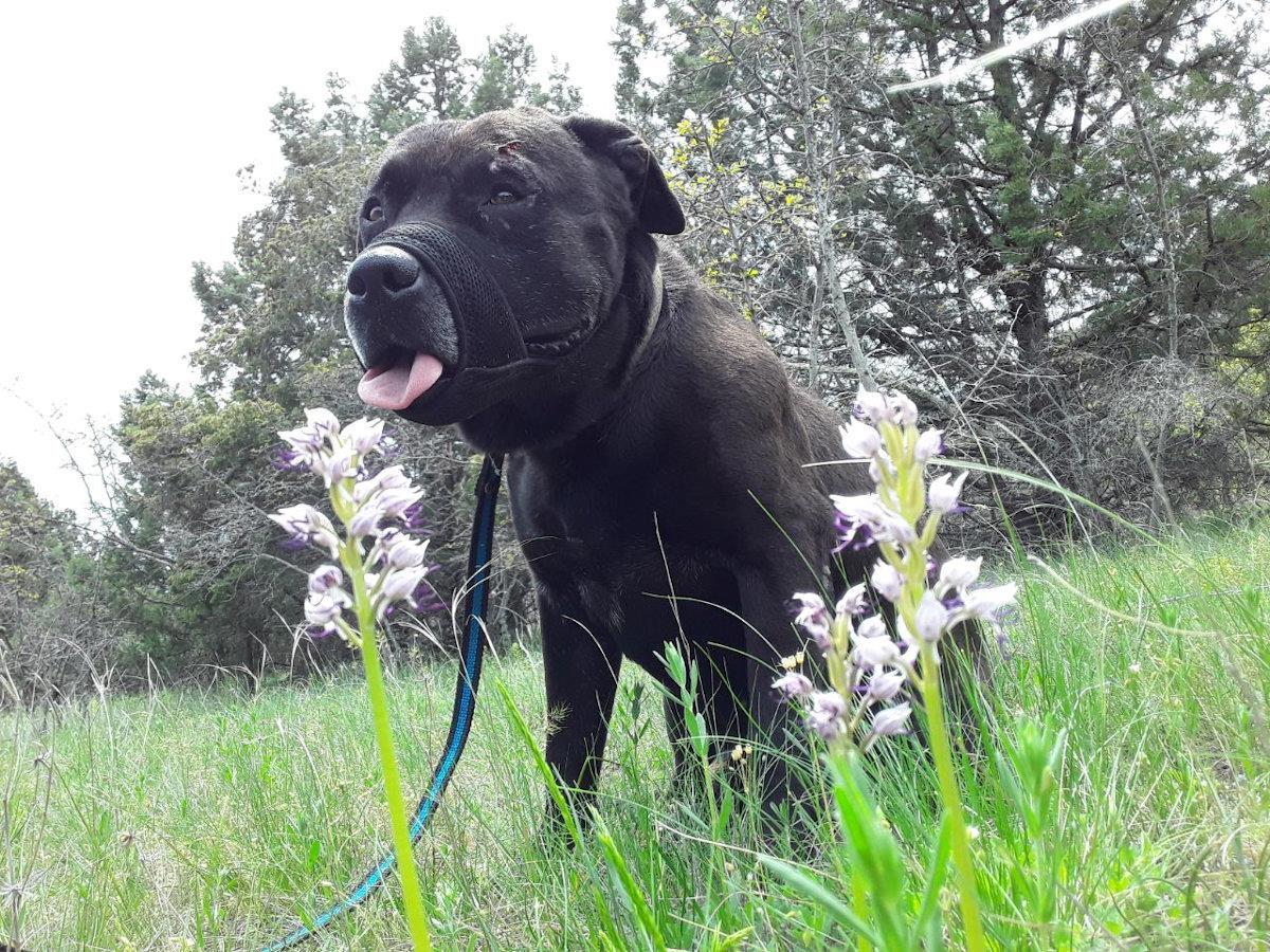 Спускаясь, мы увидели на камне две заячьи лапки – со шкуркой. Свежие. Учитывая, что кроме нас, никого в пределах видимости не наблюдалось, остаток спуска особо впечатлительные посвятили разгадке появления этих лапок. Я тот ещё тролль, и тоже внесла вклад, хотя единственная догадывалась об ответе. В низине наши группы соединились и тайна раскрылась. Залаяв, той спугнул зайца. Заяц дал дёру, вылетел на стаффа, а тот, не будь дурак, поймал его и сожрал. Вообще я не встречала более ласковой и нежной псины, чем Астор – он любит прижаться мордой, постанывая от блаженства, подставить брюшко, обнять лапами за ноги, чтобы я никуда не удрала – 40 кило милоты. Но ловит, душит, и иногда и съедает всё, что движется – ёж так ёж, змея так змея, кошка так кошка. Заяц, вот, подвернулся. Добытчик! Разве не прелесть? А знаете, кто ему морду погрыз? Дворянин Товарищ Пушкаридзе, в просторечии – Пушок.