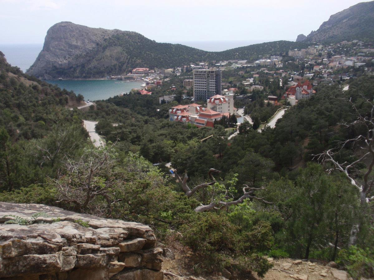 Панорама Судака с верхотуры окупила все старания. Зелёное пятно на склоне Крепостной горы – те пресловутые 37 га Судакской крепости, по которой я давала маленькие обзоры весной и летом. Ах да, и зимой тоже.