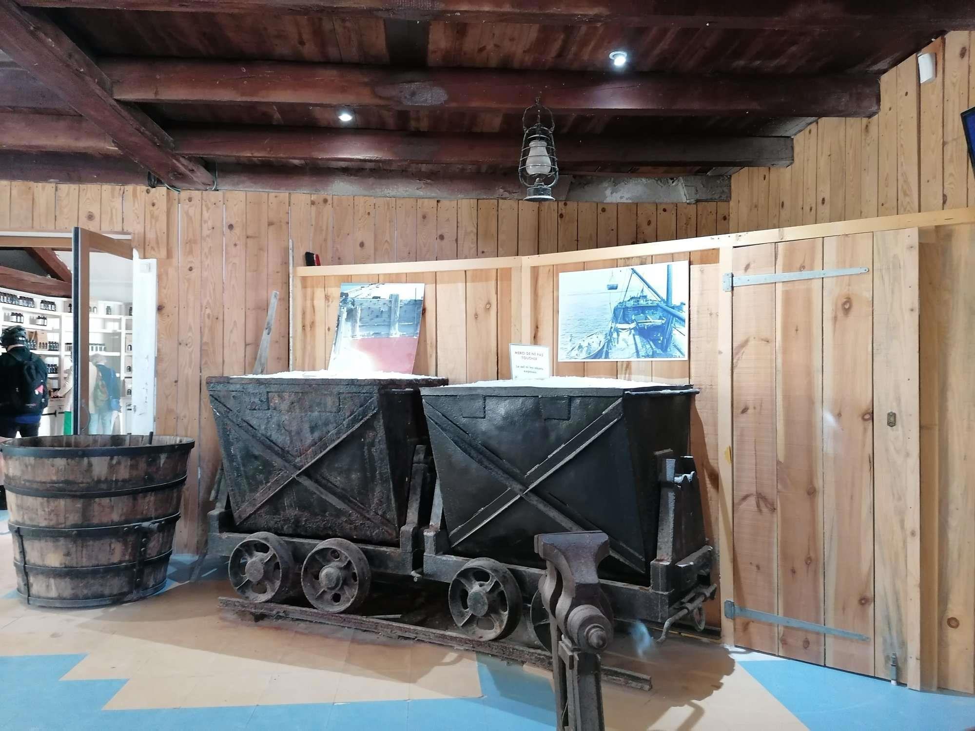 Здесь была проложена узкоколейка, по ней вот в таких вагонетках вывозили соль.