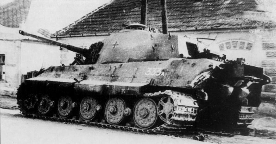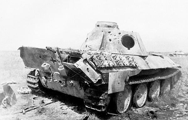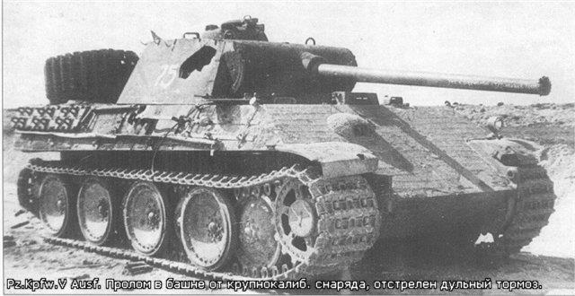 Пантера с дырками в башне. И люк оторван. КМК - три пробития и три рикошетных следа на башне.
