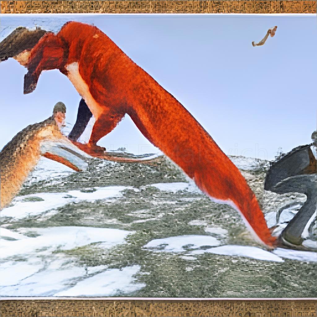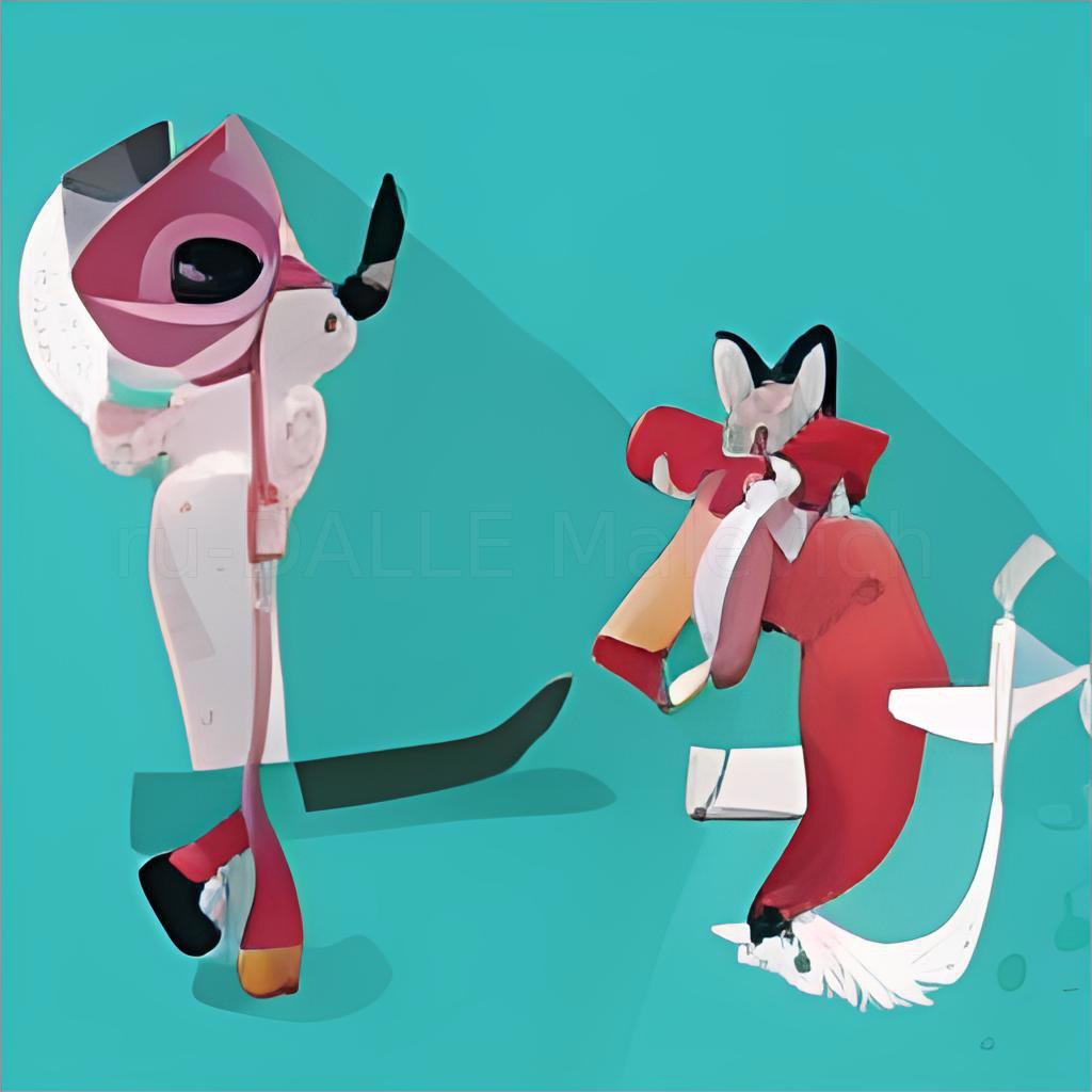 Описание было взято из моей книги "Чайный дворик мистера Вулписа". Возможно, оно было слишком с динамичным сюжетом для нейросети, ибо вместо драки лиса-джентельмена с механическими монстрами, я получила это