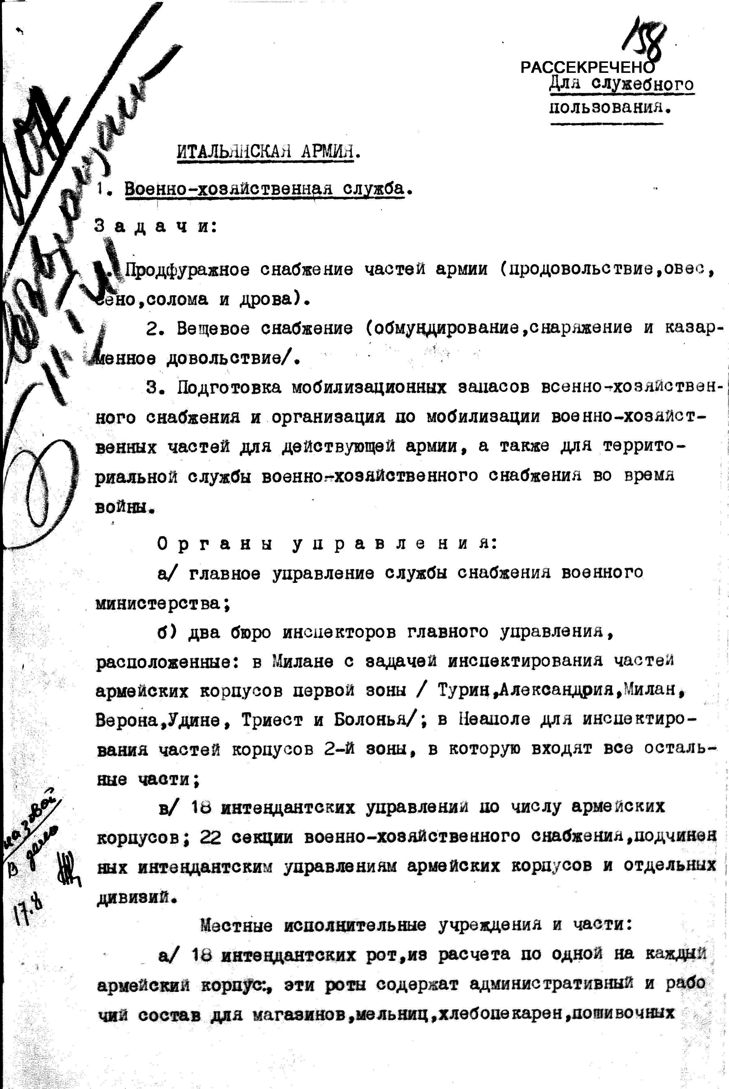 Военно-хозяйственная служба Итальянской армии. 1940 год
