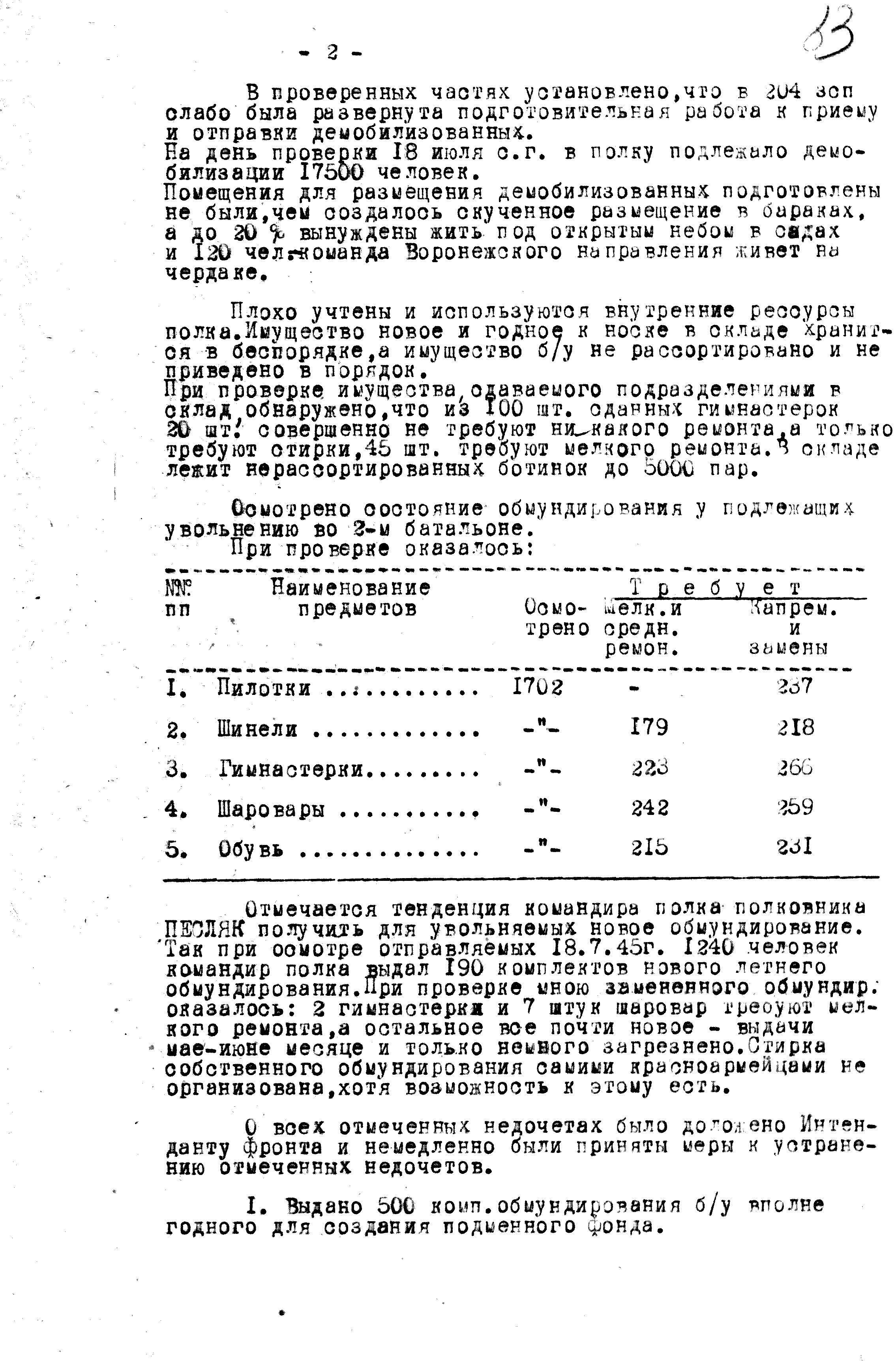 То, у интендантской службы 1-го Прибалтийского фронта, недостатков уже намного больше, начиная от размещения солдат, до их обеспеченности обувью и обмундированием.