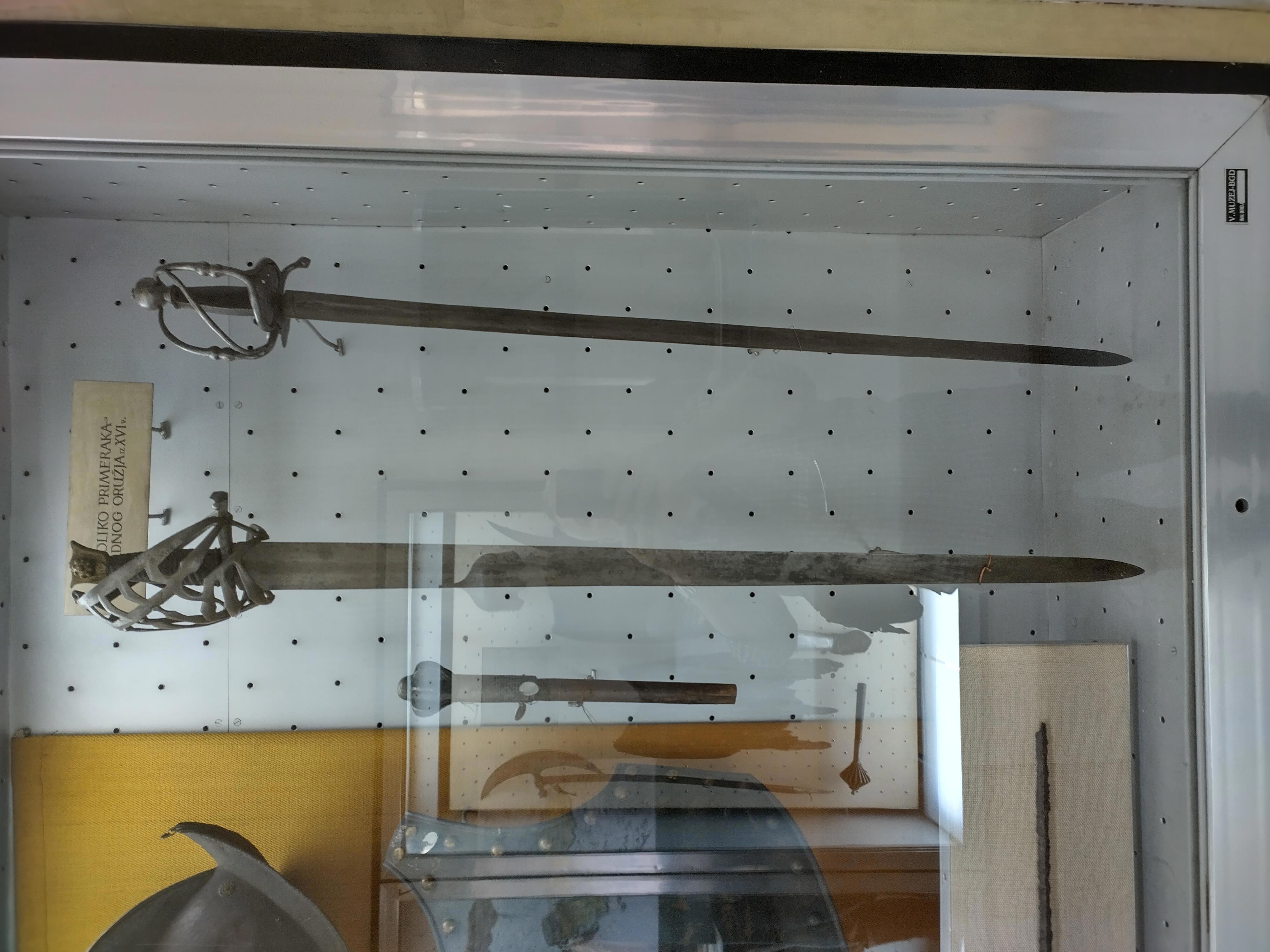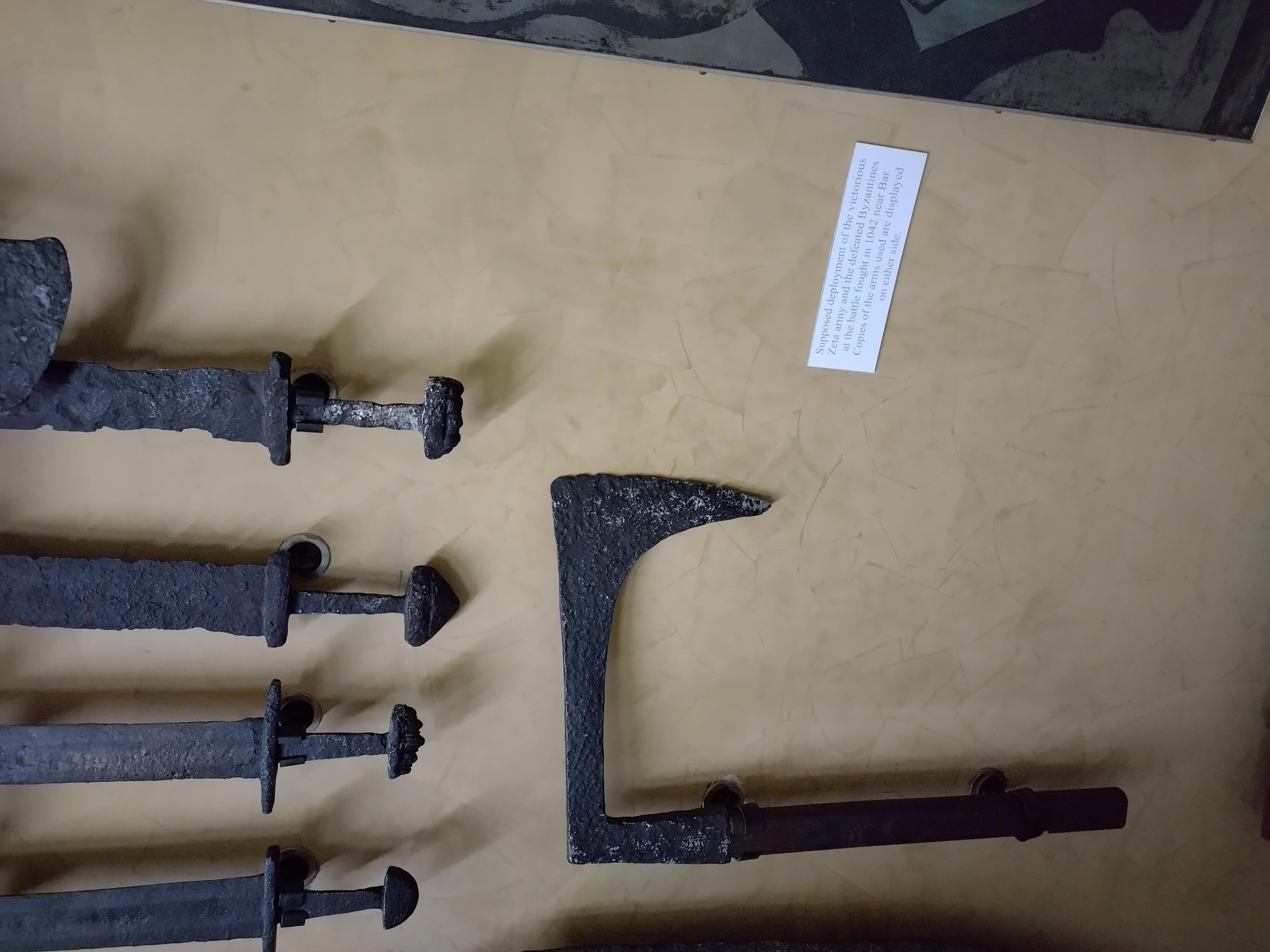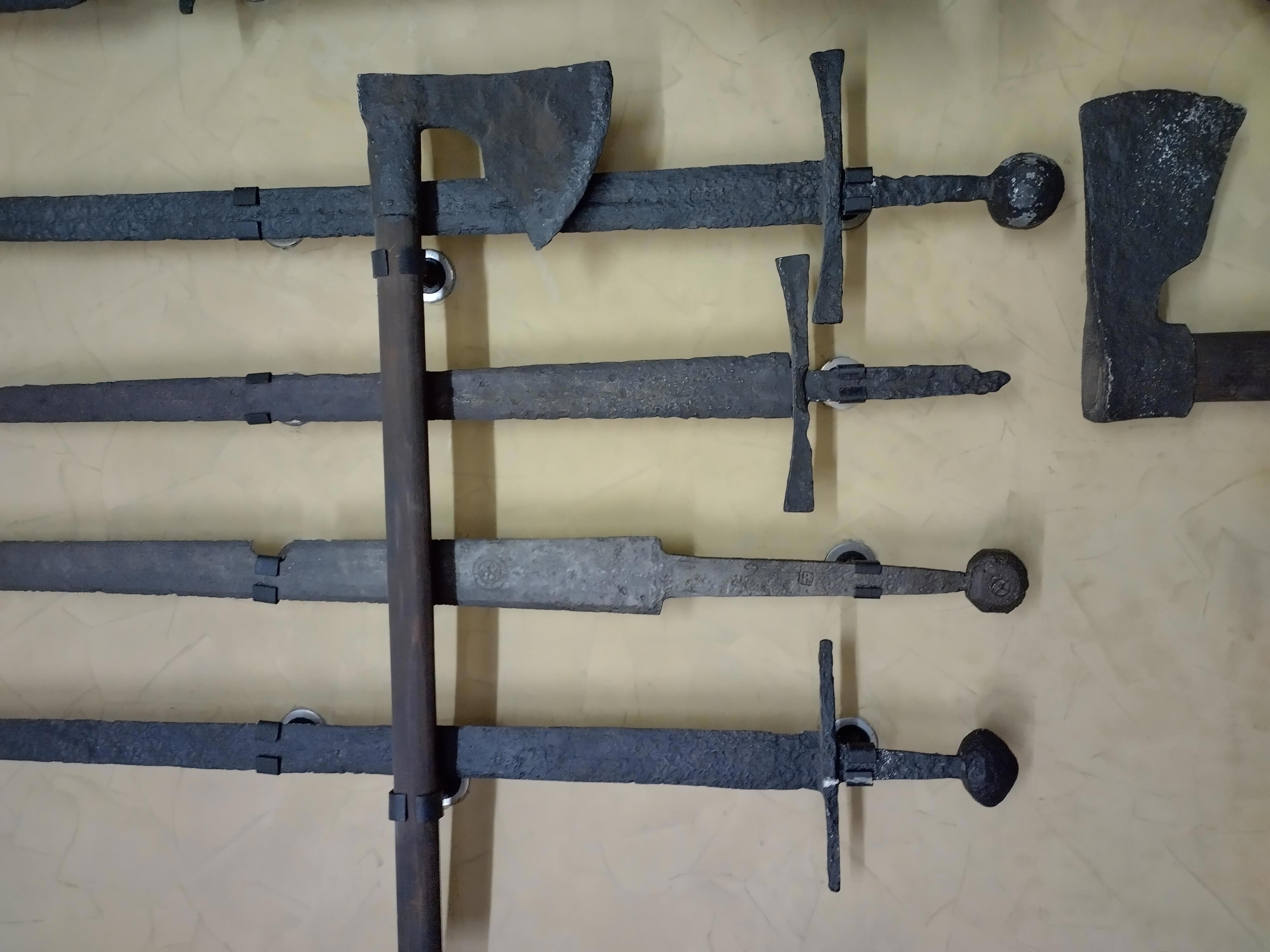 11-12 век. Уже не каролинги. Подавляющее большинство одноручные. Но вот второй слева, явно двуручник. Я к тому что, мы всегда смеемся над разработчиками исторических игр или создателями кинофильмов, которые лепят двуручники во все эпохи. Может и зря. Правда, за достоверность информации в музее ручаться не могу.