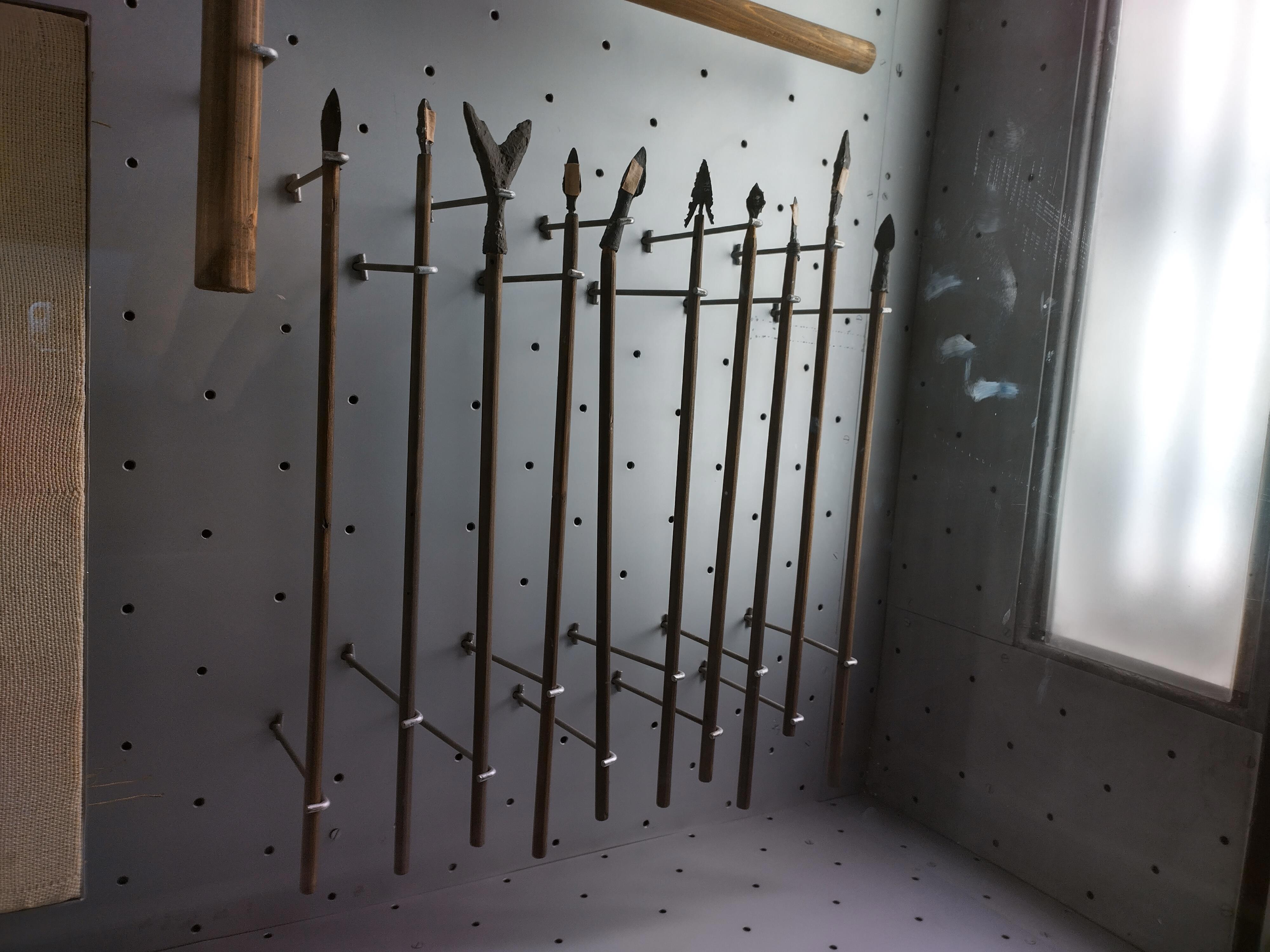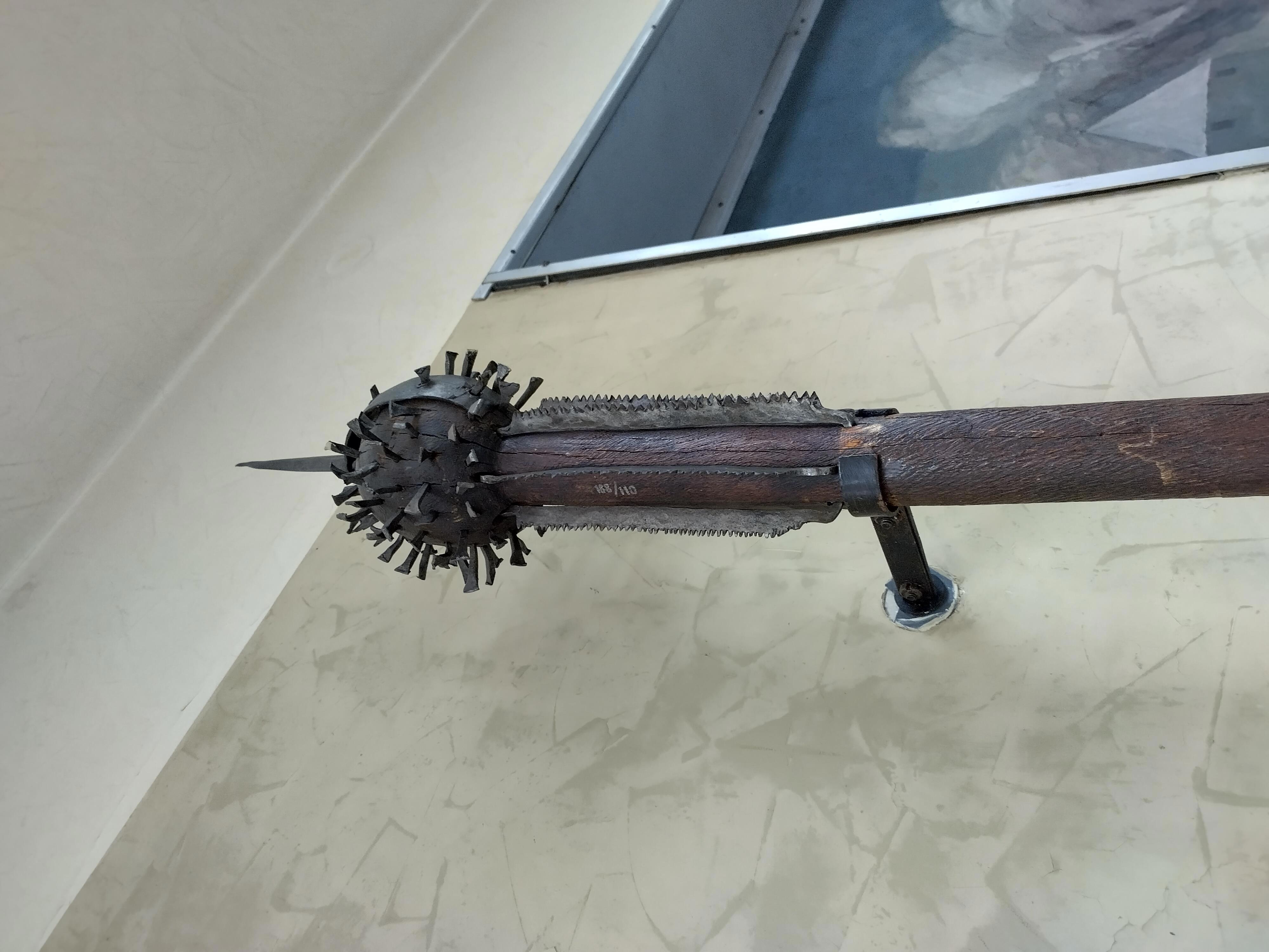 Длина этого одноручника впечатляет. Копья с крюками тоже интересны.