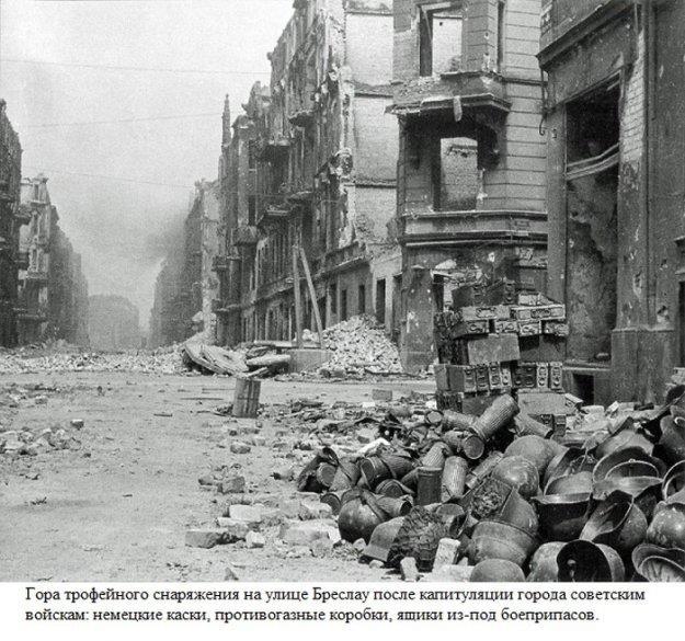 Автор: Николай Берг6 мая 1945 года город-крепость Бреслау капитулировала. Причем генерал Нихоф утверждает, что подписывалась почетная капитуляция, чуть ли не с сохранением знамен, оружия и прочего всякого, но русские это обязательство нарушили. Верить генералу. который рассказывает, что в миллионном городе было всего 14 000 жителей, сам город не являлся крепостью, а из бронетехники у него был бронепоезд и два штуга - не вижу смысла, ибо его вранье видно невооруженным глазом.