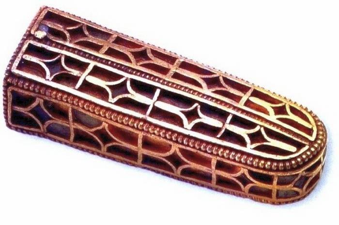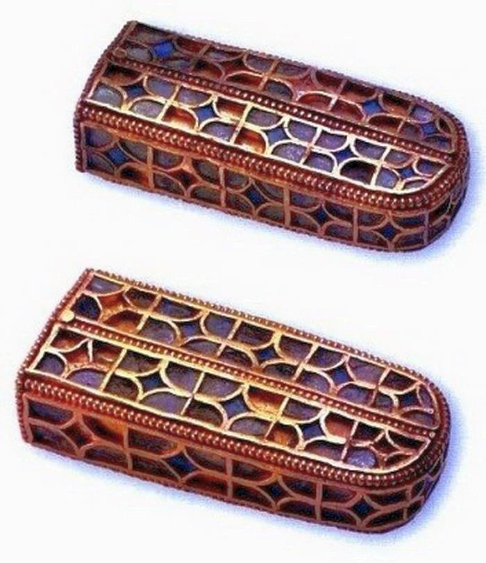 Ну и золотые наконечники с перегородчатой эмалью на концах ремней, разумеется, тоже не забыли: