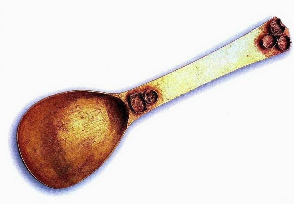 Ну и чтобы закончить «столовую тему» посмотрите на золотую ложку типа «приятного аппетита». Ну, что ж - большому куску и рот радуется... Жаль, что камни из ложки выковыряли «археологи» на память. Длина ложки 205 мм, однако: