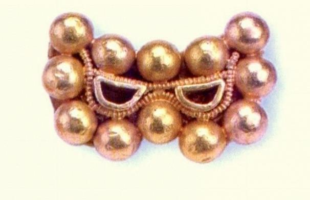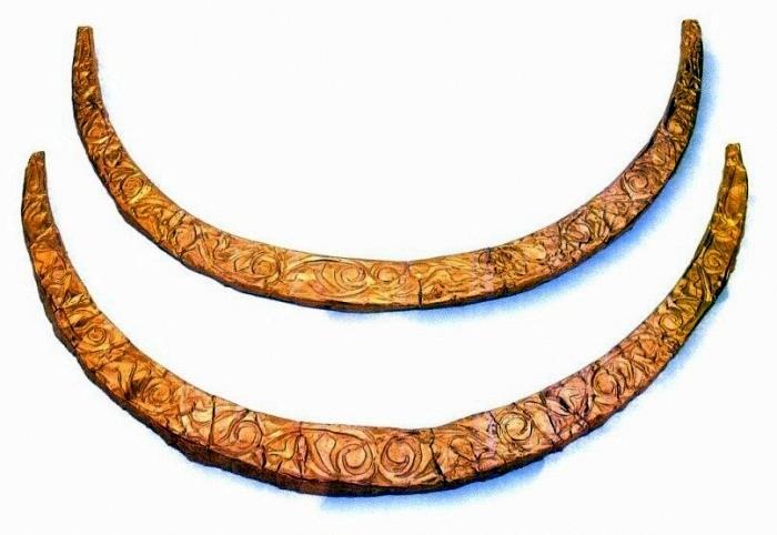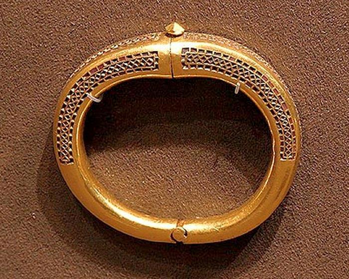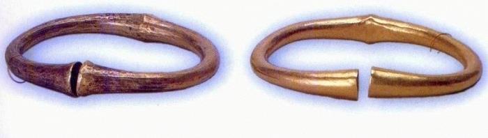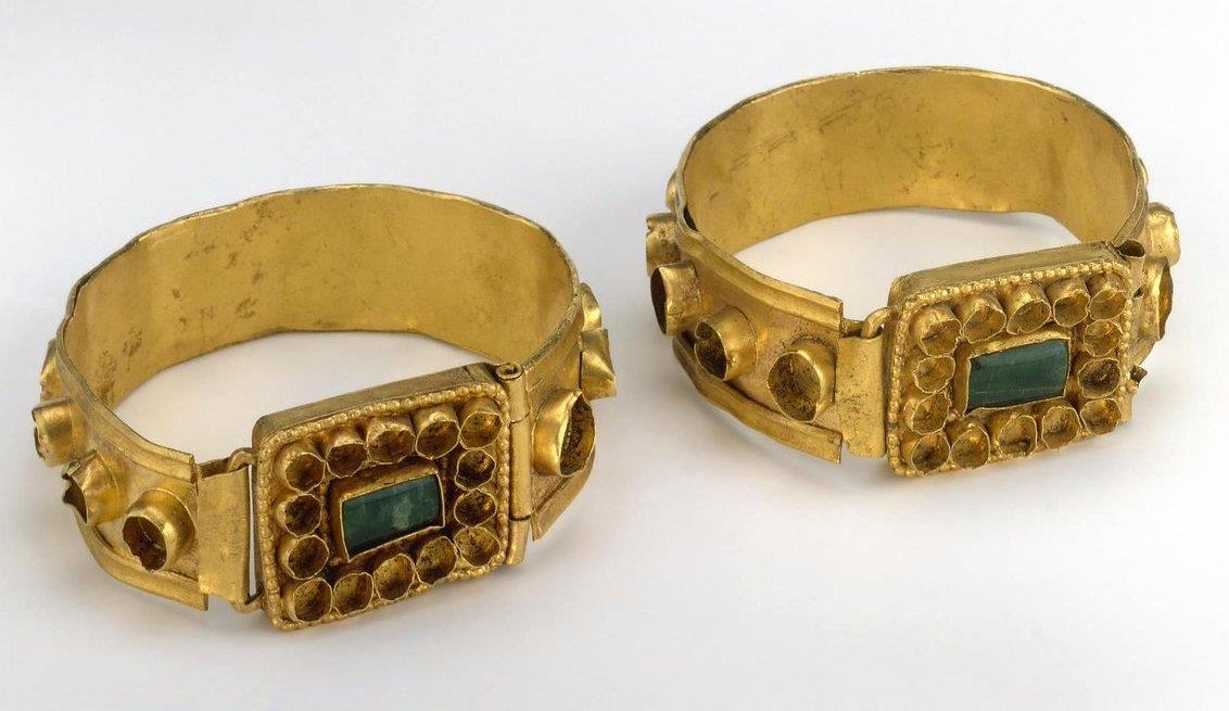 Два золотых браслета с оставшимися изумрудами, хотя большую часть камешков любители истории выковыряли на память: