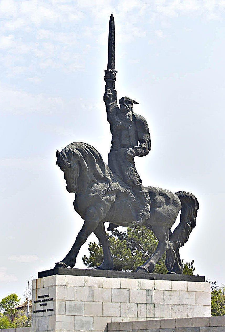 Сами понимаете, что дело было сделано очень серьёзное и люди хана Кубрата запомнили. Вот это памятник, который в наше время нынешние болгары поставили хану Кубрату... ну, не знаю. На мой взгляд его художественная и архитектурная ценность сомнительны... весьма. Впрочем, о вкусах не спорят – может болгарам нужен именно такой великий хан Кубрат, который сидит верхом на животном со странной походкой, одной рукой поднял меч, а другой – поддерживает штаны: