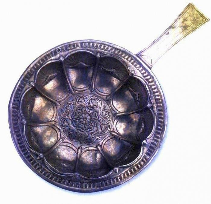 Золотое персидское блюдо, хотя его почему-то называют чашей. Вообще здорово похоже на селёдочницу. Да, какая разница? Короче, неплохо обработанное золото: