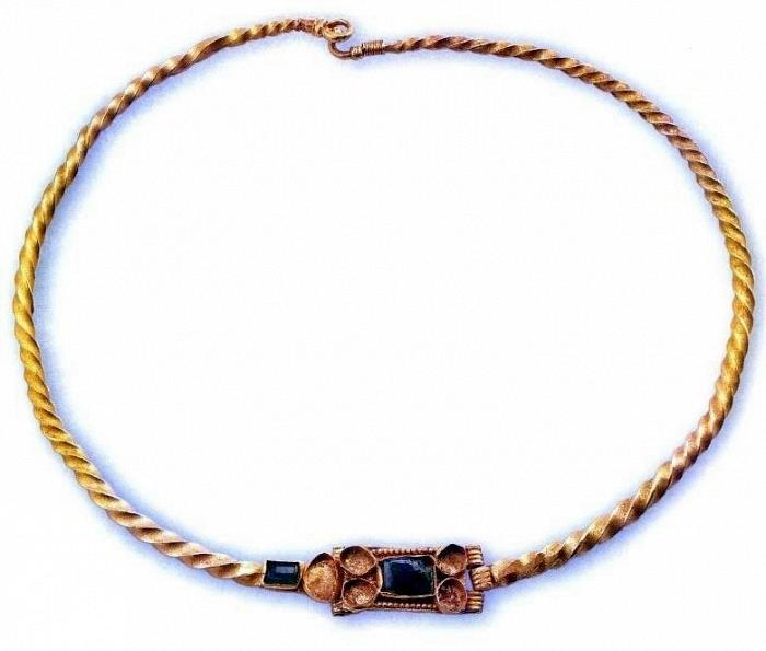 На шее хан, как и положено знатному воину, носил симпатичную золотую гривну с изумрудом и ещё какими-то камнями: