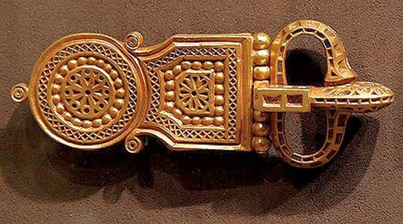 Ещё на ремнях было в достатке и более мелкой золотой пластики. Это всевозможные бляшки и псевдопряжки. Вот такие: