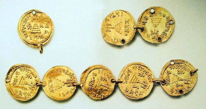 Кроме гривны на шее хан носил вот такое ожерелье из Византийских монет императора Ираклия: