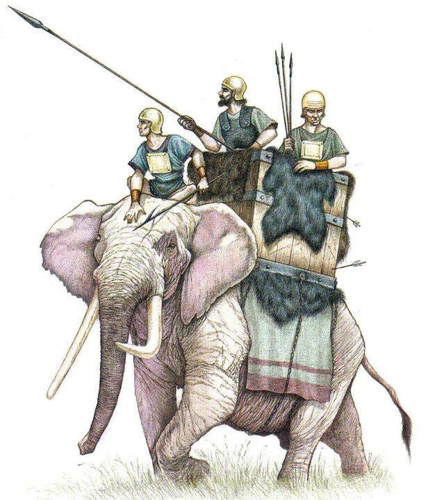 Пунийцы снаряжали карфагенских слонов железными пластинами, а на их спинах распологались либо копейщики, либо лучники!