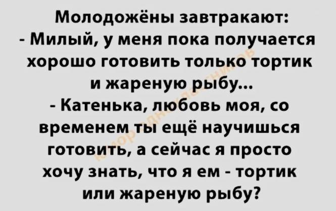 Муж: Приготовь мне чай. Когда ты делаешь чай, он почему-то всегда получается вкуснее.