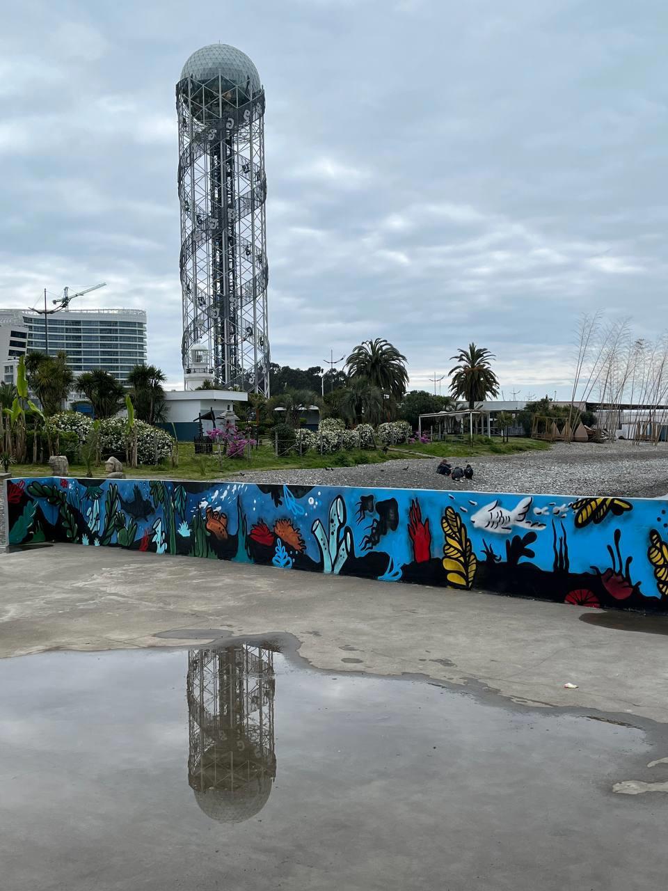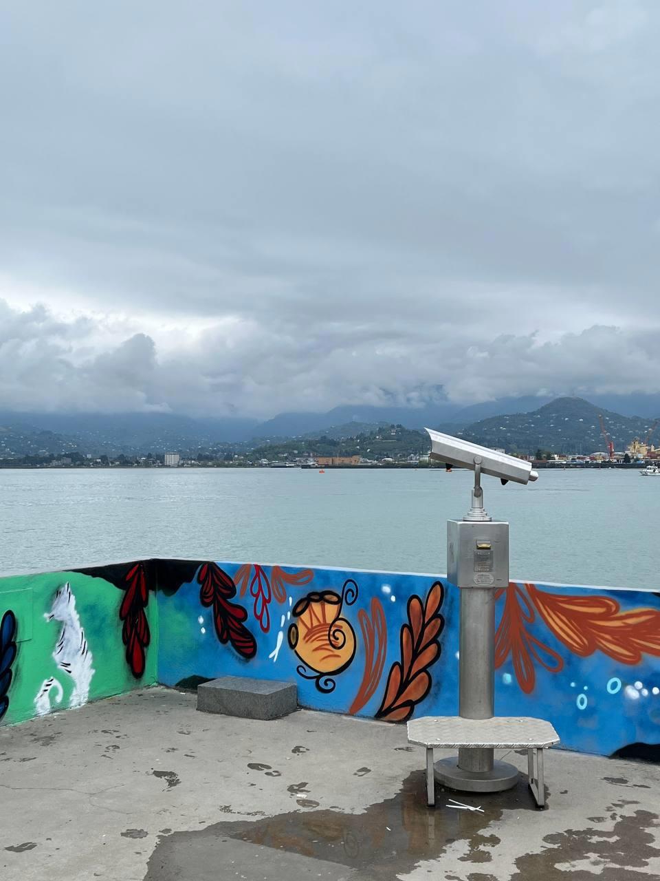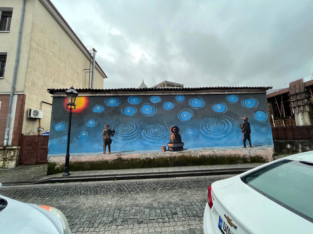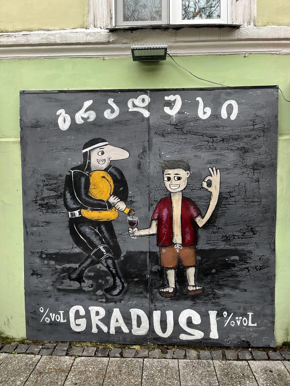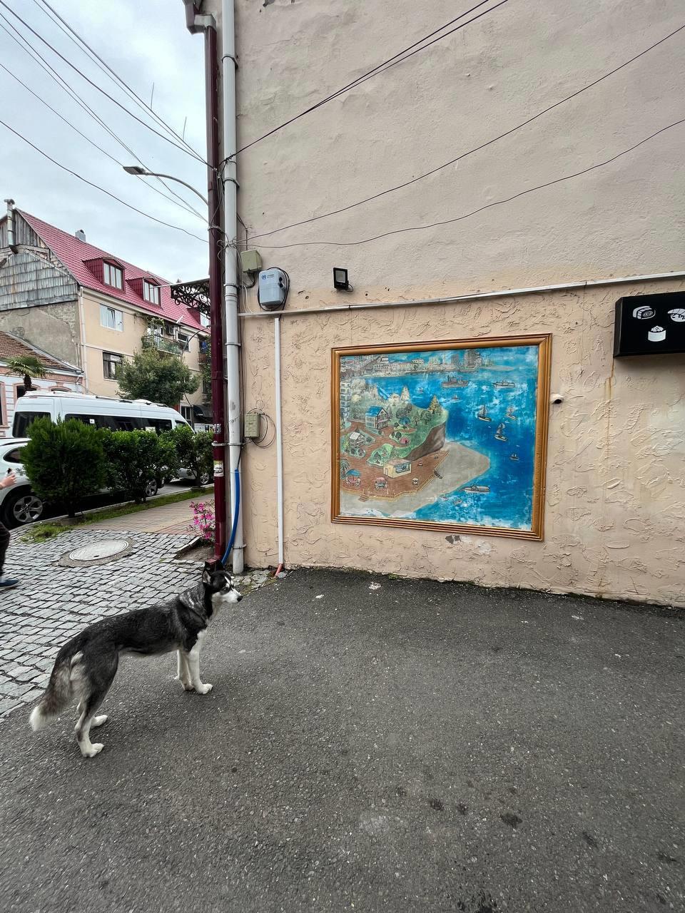 В Батуми очень многие заведения, чтобы заявить о себе, используют не плакаты и вывески, а именно арты на стене здания. В прошлом блоге уже был пример такого бара :)