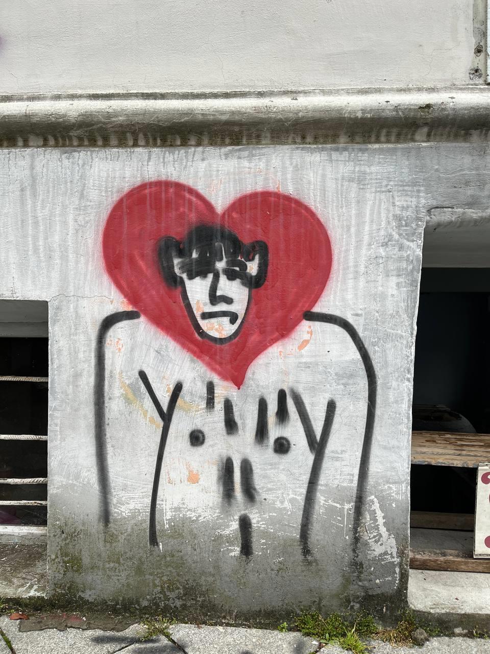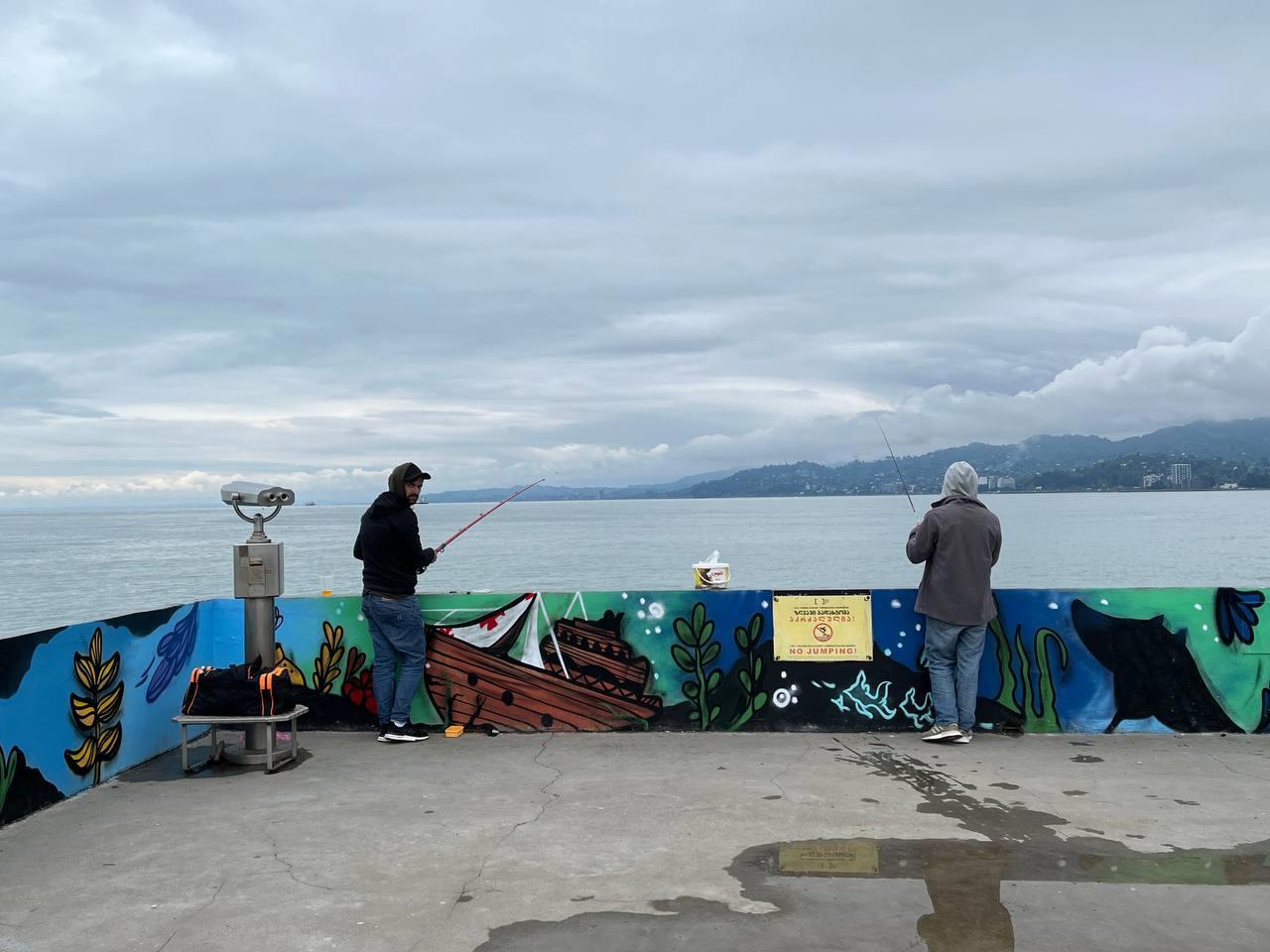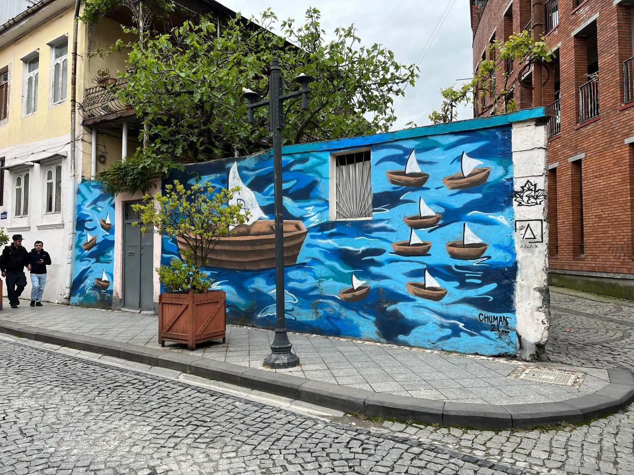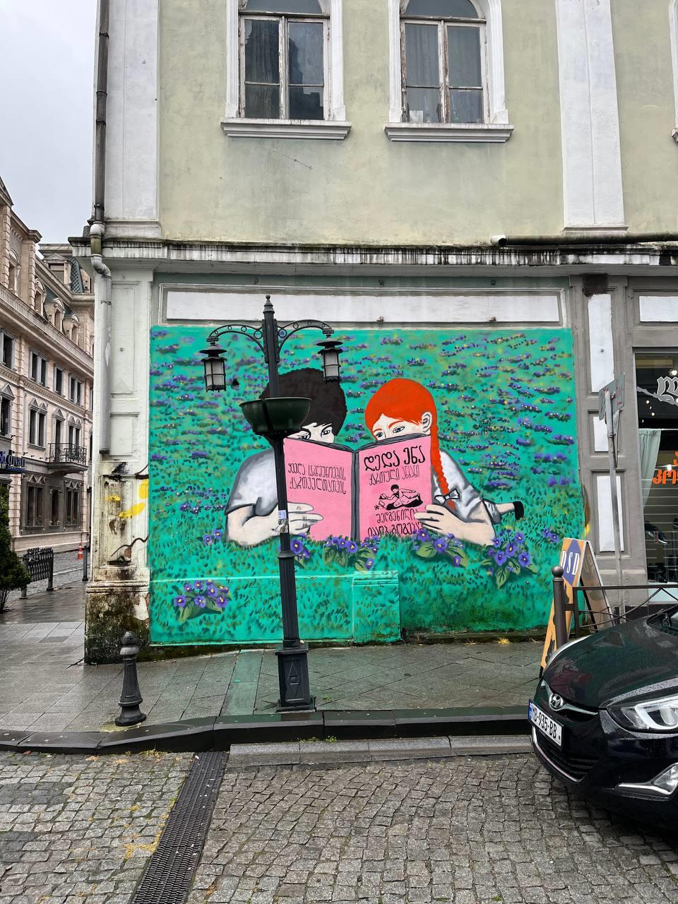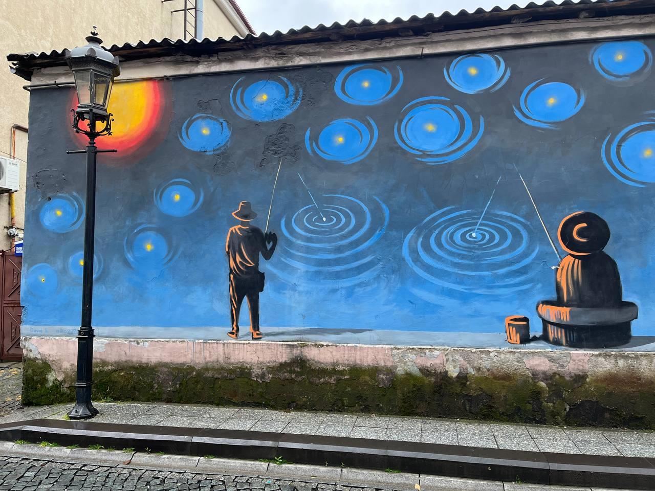 В Батуми очень многие заведения, чтобы заявить о себе, используют не плакаты и вывески, а именно арты на стене здания. В прошлом блоге уже был пример такого бара :)